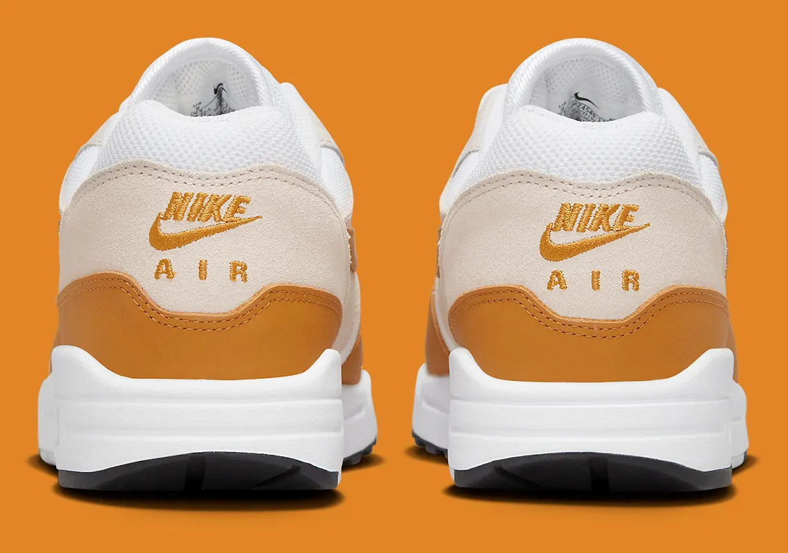 Les œillets de la partie supérieure, les swooshes du profil et les garde-boue s’écartent dans une teinte orange foncé qui introduit également le cuir tambouriné. Le marquage sur l’étiquette de la languette et sur la colonne vertébrale suit le même chemin. Sous le pied, la semelle changeante reste simple : la semelle intermédiaire présente une finition « incolore », tandis que la traction gaufrée présente un mélange de « Black », « White » et « Bronze ».