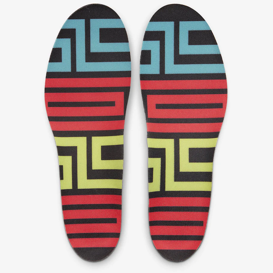Le garde-boue est habillé d’une teinte rosée, tandis qu’un panneau intermédiaire violet présente des motifs traditionnels, tout comme le talon, l’avant-pied et la pointe. Une semelle intermédiaire noire avec une unité de talon Air visible et une semelle translucide glacée vient compléter le look. Cette paire a était produite à 7500 exemplaires monde.
