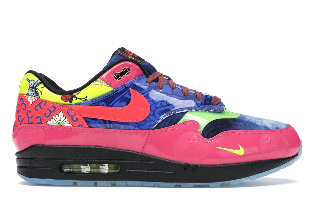 La Nike Air Max 1 « Chinese New Year – Longevity » est une sortie exclusive en Asie pour 2020 qui fait partie des efforts annuels de Nike pour célébrer le Nouvel An chinois. L’ambiance de ces deux semaines de vacances se retrouve dans la composition dynamique de l’Air Max 1, avec ses panneaux contrastants en cuir verni brillant et ses caractères et symboles chinois en relief sur toute la partie supérieure.