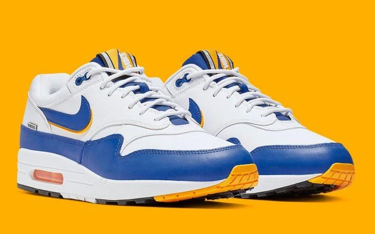 L’Air Max 1 SE « Windbreaker » est sorti en juin 2019 avec un look inspiré des coupe-vent de la vieille école. La chaussure se caractérise par une construction en cuir avec une base blanche, recouverte de Game Royal et University Gold. Sous le pied, la semelle intermédiaire abrite une unité University Gold Max Air dans le talon pour l’amortissement, laissant place à une semelle extérieure gaufrée tricolore pour la traction.
