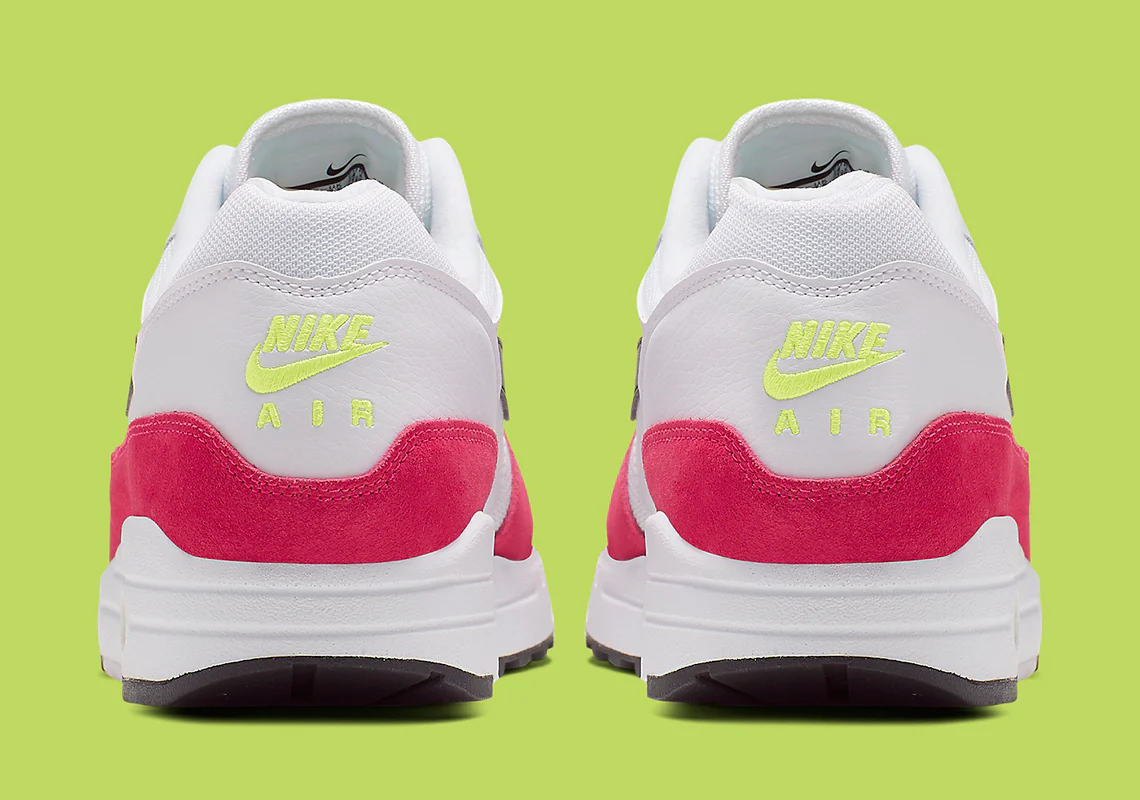 La Nike Air Max 1 « Rush Pink » combine le blanc et les couleurs vives pour créer un style énergique. Au départ, le cuir blanc et les matériaux en maille sont complétés par une Nike Swoosh noire. En dessous, un garde-boue en daim nubuck dans « Rush Pink » se distingue. Le dernier élément est le vert Volt sur la marque et la semelle extérieure. La Nike Air Max 1, d’inspiration rétro, est dotée d’une semelle intermédiaire en mousse avec le rembourrage de la Air Max originale et d’une semelle extérieure en caoutchouc pour la traction.