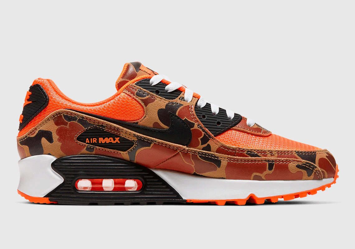 La Nike Air Max 90 Orange Camo est lancée ce mois-ci. Habillée en « Total Orange« , la paire est le troisième ensemble de la silhouette prêt pour la chasse en 2020. Contrairement aux versions précédentes, la prochaine Air Max 90 renonce à tout vert traditionnel en faveur d’un imprimé de camouflage de canard à tendance brune. Les accents de soutien (oculaires en TPU, boîtiers des unités Air Max, marquage) font vaguement allusion à une collaboration atmos de 2013 avec leur arrangement « Black ». Sous le pied, les semelles intermédiaires en EVA blanc rappellent les débuts du modèle il y a 30 ans.