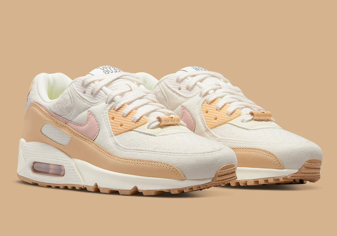 Cela est évident sur la semelle ainsi que sur la base textile, qui sont mouchetées et tissées d’une manière unique par rapport aux Air Max 90 précédentes. Par rapport au reste de la collection « Sun Club », ce coloris met davantage l’accent sur la simplicité, en renonçant au soleil souriant et aux pastels éclatants. Il y a cependant des rappels au pack le long de la languette et du talon, ainsi qu’un dubrae unique en forme de bambou.