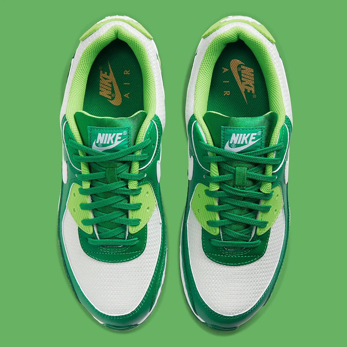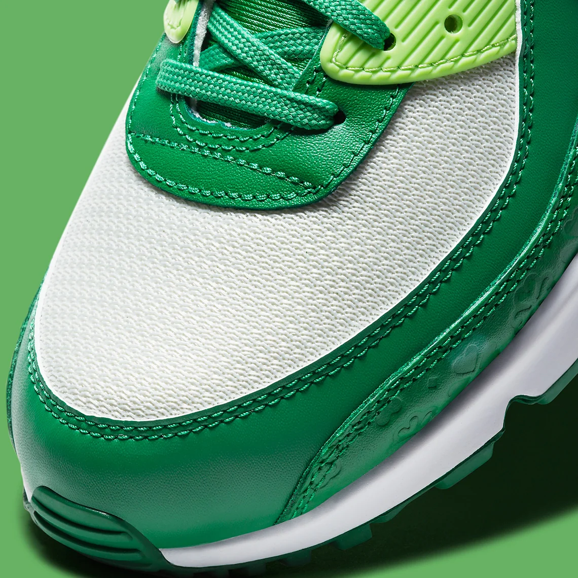 Nike n’hésite pas à créer des chaussures sur le thème des fêtes, et la plupart du temps, les concepts les moins abstraits et les plus simples sont ceux qui plaisent le plus au public. Avant la fête de la Saint-Patrick du 17 mars, nous avons un aperçu de la Nike Air Max 90 recouverte d’un coloris multi vert, avec une maille blanche classique qui recouvre les superpositions colorées.