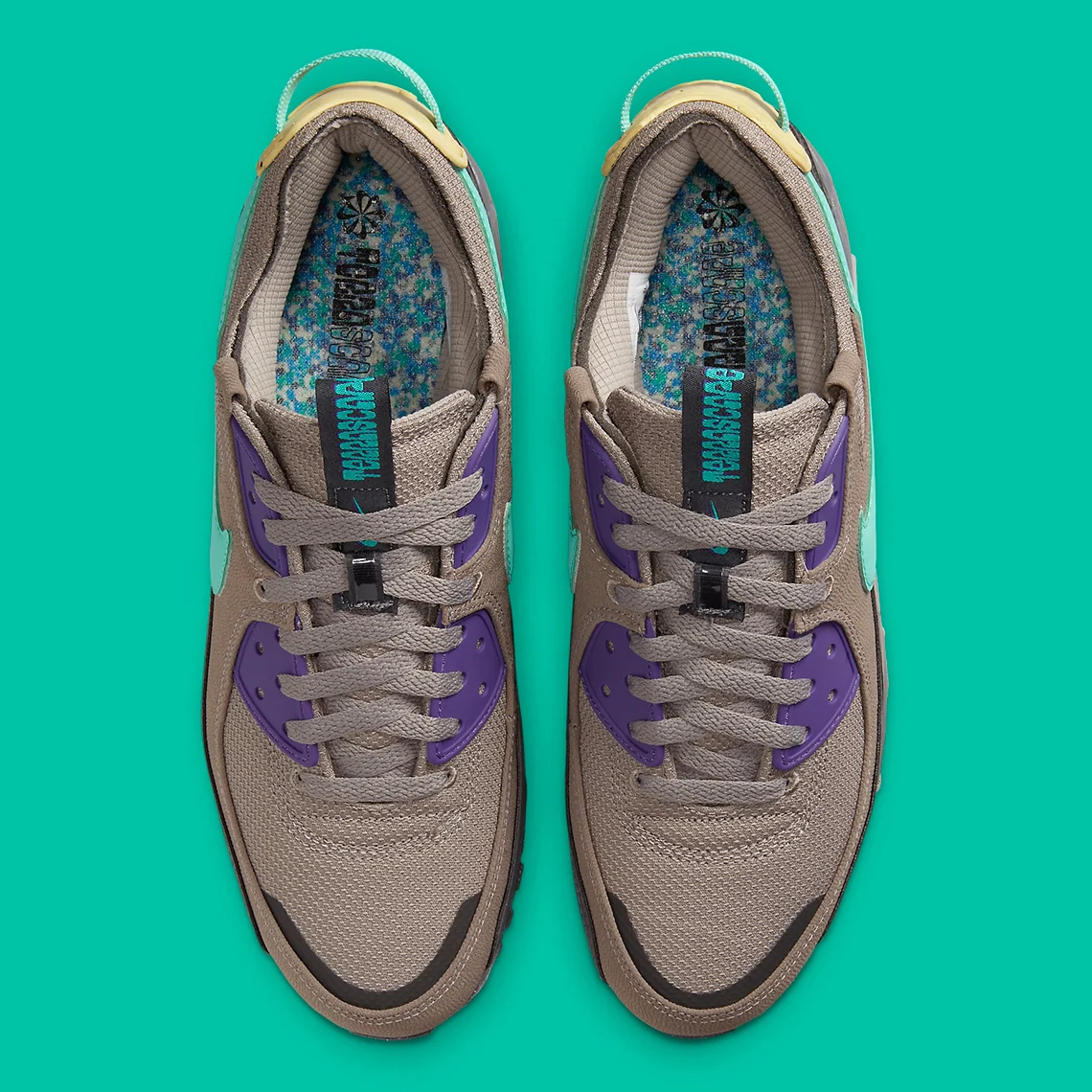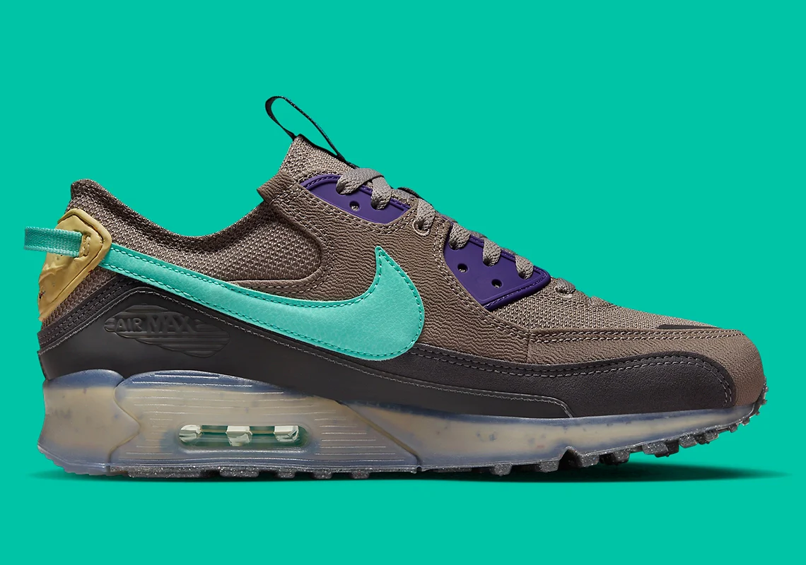 Créée en pensant à l’extérieur, la ligne « Terrascape » a réimaginé certaines des silhouettes Air Max les plus emblématiques de Nike, de l’Air Max 97 à l’Air Max Plus. La Air Max 90 fait également partie de la collection, et elle a récemment fait surface dans un tout nouveau coloris aux accents Aqua et Concord.