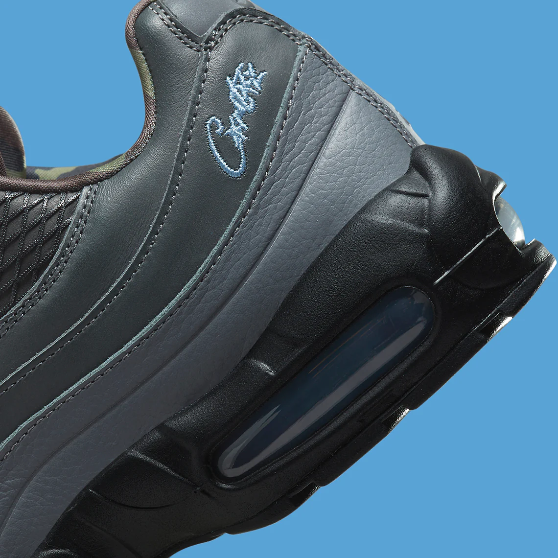 La Nike Air Max 95 SP Corteiz Aegean Storm réinvente l’iconique silhouette de 1995 à travers l’esthétique brute et militaire de Corteiz. Cette édition spéciale se distingue par une construction riche en textures où se mêlent ripstop technique, suède épais et canvas robuste, le tout plongé dans une palette Aegean Storm profonde qui oscille entre bleu orage et nuances pétrole. Les couches superposées caractéristiques de la 95 prennent ici une allure plus tactique, renforcée par les inscriptions “RTZ” brodées et les accents volt emblématiques de la marque londonienne. L’ADN Corteiz se lit dans les détails : motifs camouflés subtilement intégrés, lacets techniques, œillets renforcés et branding détourné pour un impact visuel puissant. La semelle intermédiaire conserve l’héritage Air Max avec ses unités Air apparentes sur toute la longueur, offrant un amorti dynamique et une allure imposante. L’ensemble crée une sneaker à l’attitude street radicale, fusionnant culture grime, énergie londonienne et design Nike légendaire dans une version profondément premium.