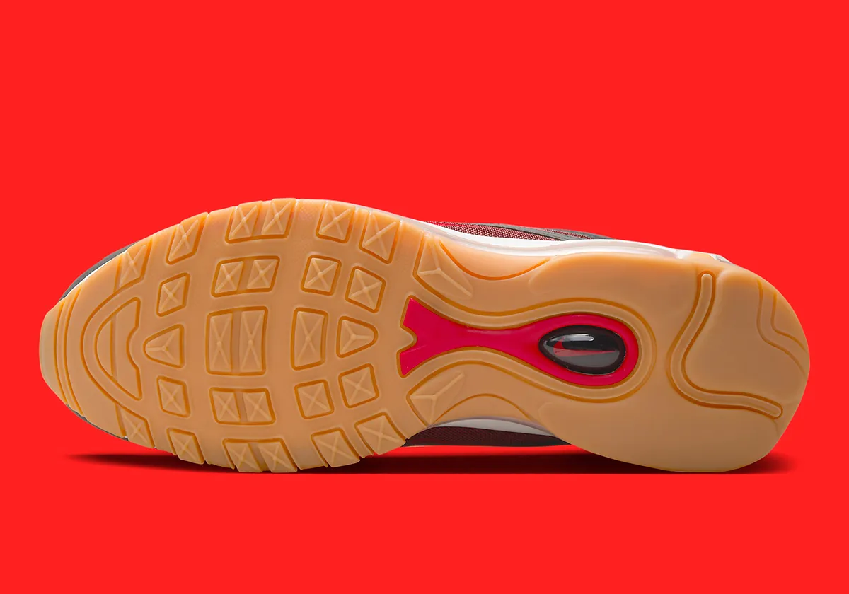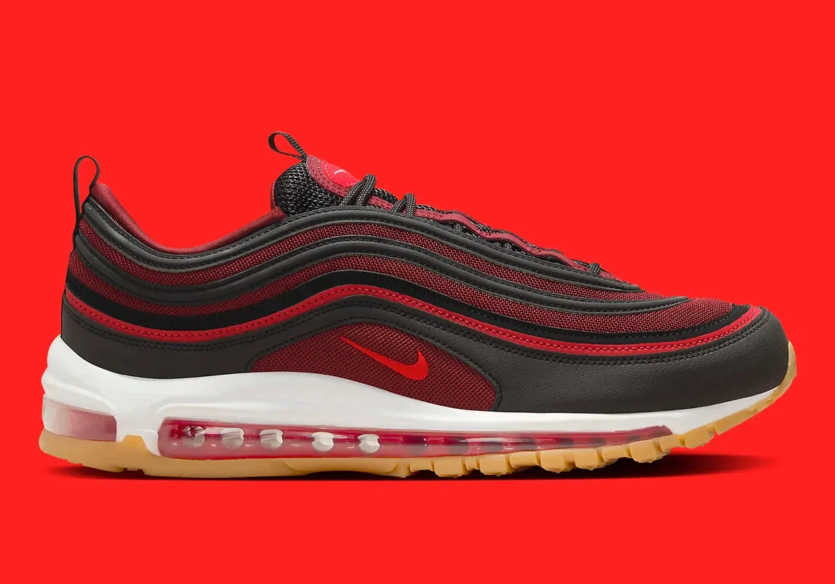 Découvrez la Nike Air Max 97 Black Team Scarlet Gum, une revisite moderne et élégante du modèle emblématique des années 90. Avec son design ondulé inspiré des trains à grande vitesse japonais et son amorti Air sur toute la longueur, cette sneaker allie confort et style intemporel.