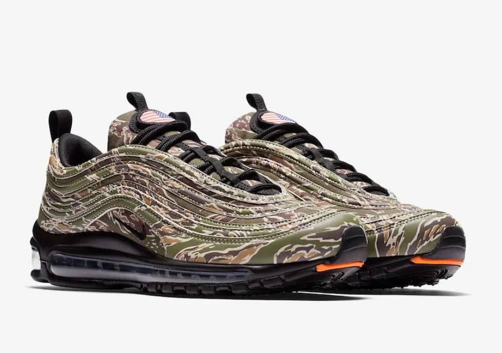 La Nike Air Max 97 a fêté son 20e anniversaire en 2017, et après une grande offre de couleurs originales, de nouveaux looks, et même de reconstructions modernisées, les festivités se sont terminées avec un pack « Country Camo » prêt au combat. Représentant les tenues militaires de l’Italie, du Royaume-Uni, de la France, de l’Allemagne et du Japon, la collection comprenait bien sûr aussi les États-Unis, que nous avons ici.