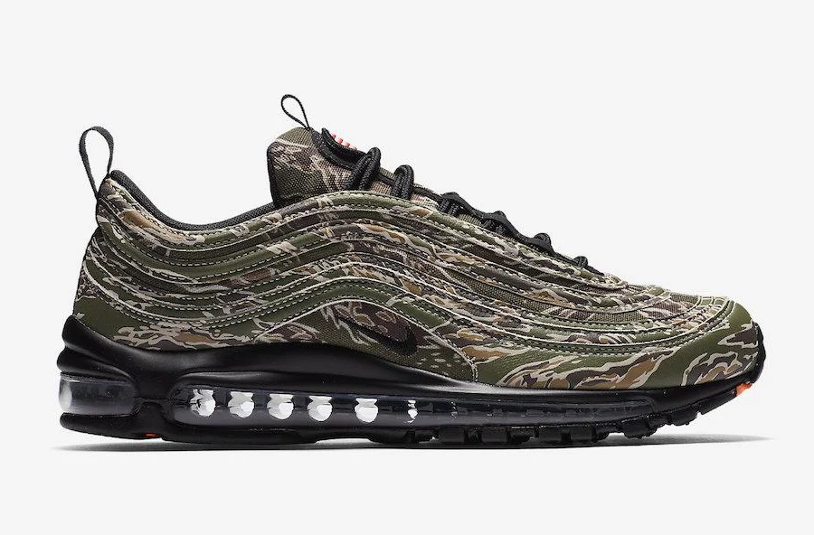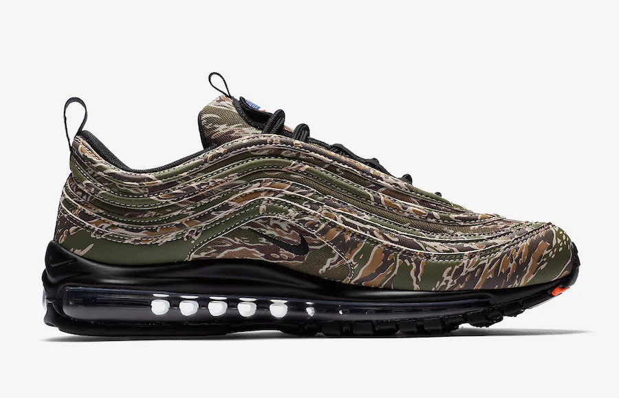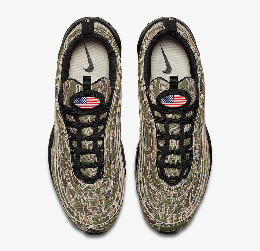La Air Max 97 USA Camo est en camouflage tigre sur la partie supérieure, avec le drapeau américain sur chaque langue (amovible avec un Nike Swoosh en dessous). La USA Country Camo Air Max 97 clôturera sans aucun doute en beauté le 20e anniversaire du modèle emblématique Air Max, et deviendra l’une des chaussures les plus convoitées de l’année.