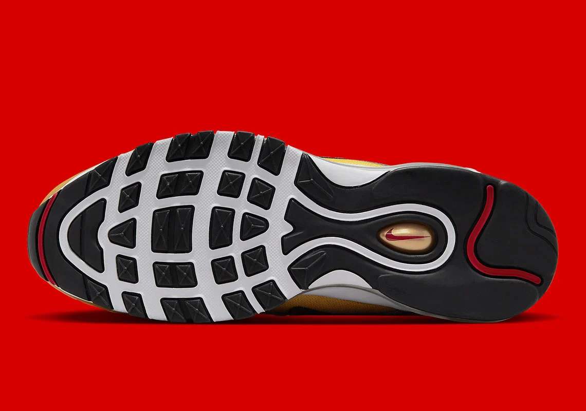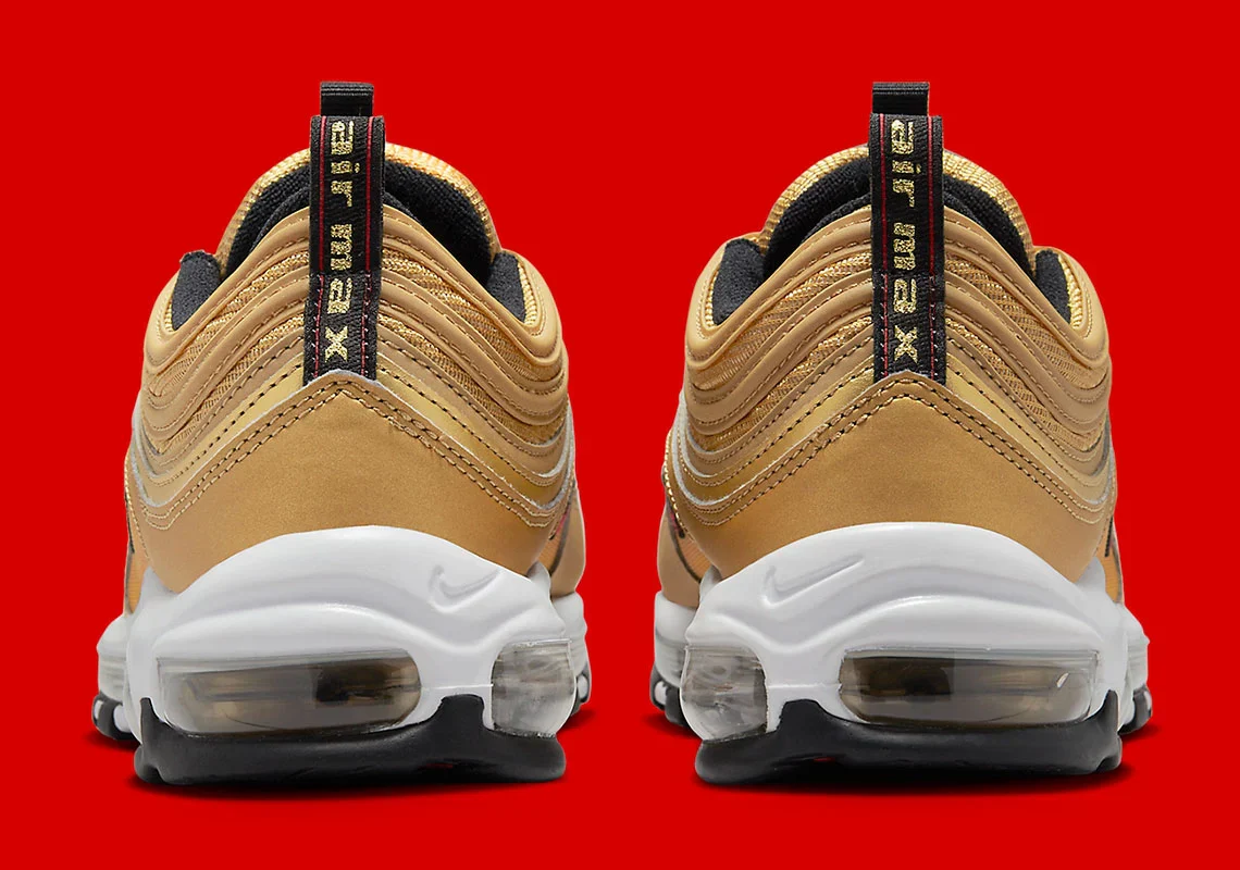 L’inspiration de métal précieux est complétée par des accents noirs sur la semelle extérieure, la doublure intérieure, la languette du talon et la langue. Des touches de rouge apparaissent également sur les Swooshes que l’on voit sur les côtés latéraux et médians de la chaussure, ainsi que sur la langue. Une semelle intermédiaire blanche équilibre le look, tandis que l’unité d’air pleine longueur met l’empreinte de Nike sur le design.