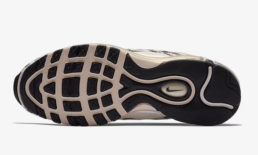 Le système de laçage innovant ajoute au motif raffiné et permet un ajustement personnalisé. La Nike Air Max 97 Premium est dotée d’une semelle intermédiaire blanche sur une semelle extérieure en caoutchouc noir et beige.