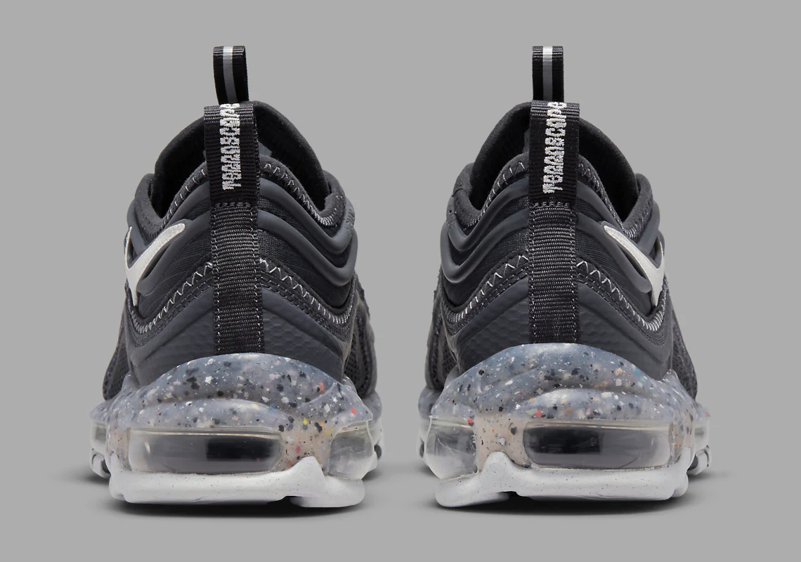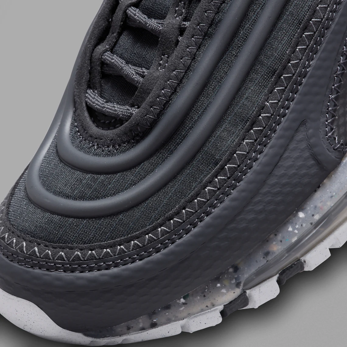 Sous le pied, la semelle intermédiaire Crater Foam, conçue à partir de matériaux Nike Grind recyclés, garantit un amorti léger et écoresponsable. La semelle extérieure semi-translucide renforce l’aspect technique et futuriste du design, tout en offrant une excellente traction. Avec son mélange d’élégance, de durabilité et d’innovation, cette Terrascape revisite la 97 sous un angle urbain, sobre et visionnaire.