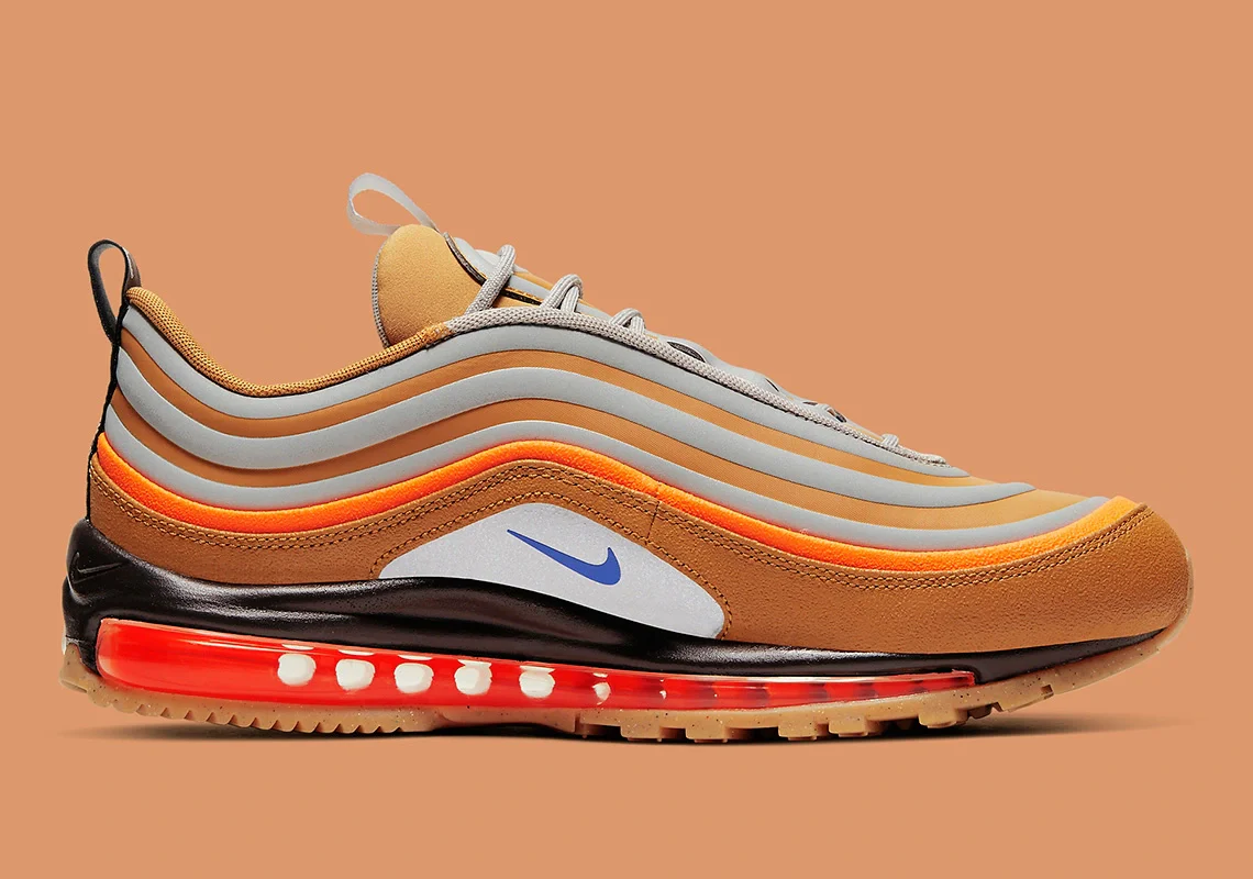 Alors que de nombreux autres classiques de Nike ont connu leur lot de mises à jour sous le moniker « Utility« , la Air Max 97 a été largement sous-représentée avec seulement les versions « SE » et « Ultra » à la place de la branche la plus technique du design. Cependant, cela vient de changer pour le mieux avec l’introduction de deux nouveaux schémas sous l’épithète transformative, l’introduisant dans un style différent. Le premier, rendu ludique par le contraste, est principalement un mélange de tons chauds : les garde-boue et toutes les autres couches arborent des variations plus discrètes de suédine, puis des synthétiques plus lisses, accentués entre les deux par des bandes réfléchissantes et des tubes de néon d’un bord à l’autre.