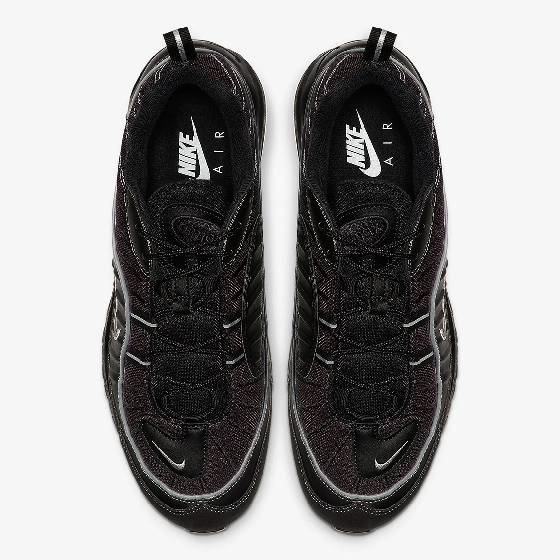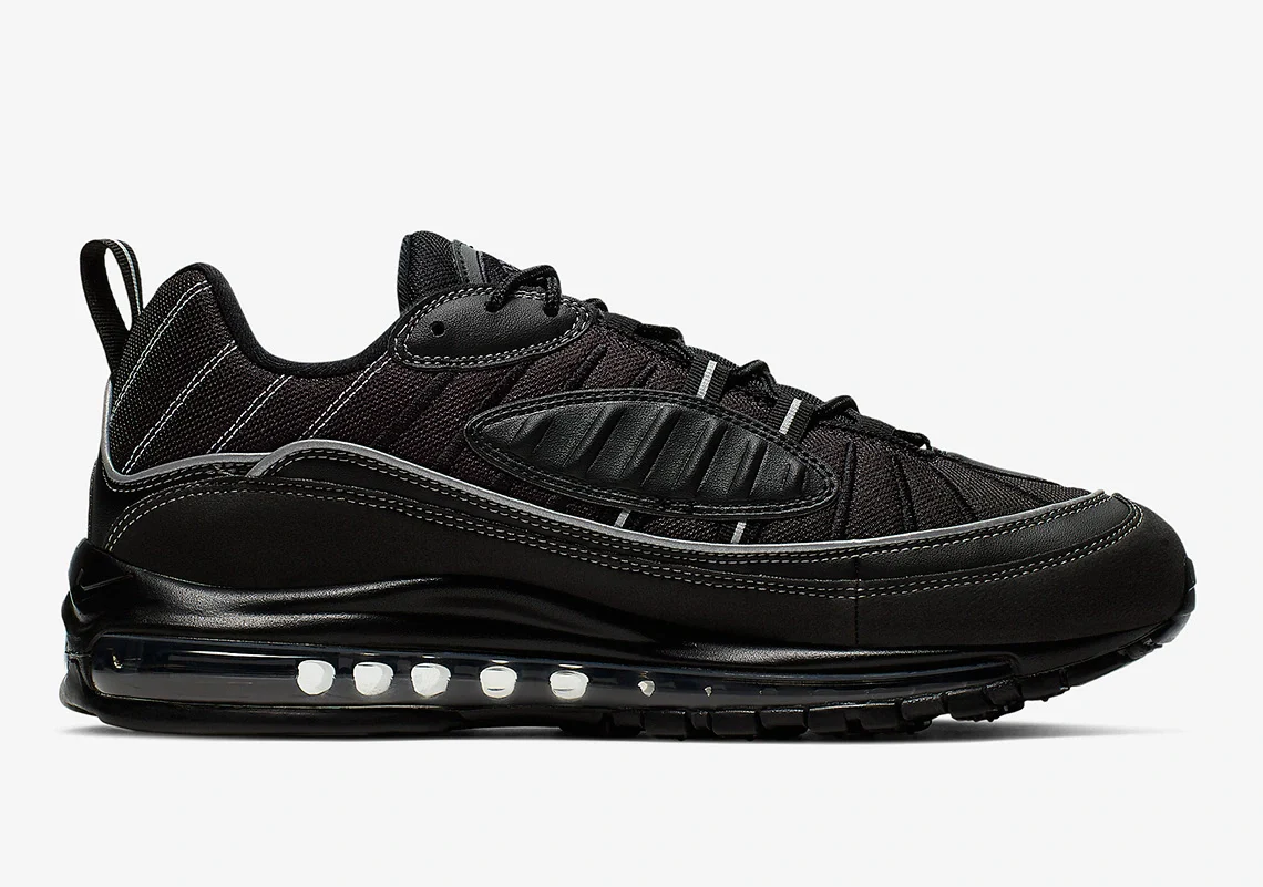 La Nike Air Max 98 est équipée pour les courses nocturnes en ville avec son dernier maquillage, arrivant furtivement en comparaison avec la plupart des schémas sur le thème de l’été vus au cours des derniers mois. Habillée de noir dans presque tous ses accents, la paire conserve son allure visuelle grâce à des textures divergentes et des embellissements réfléchissants.