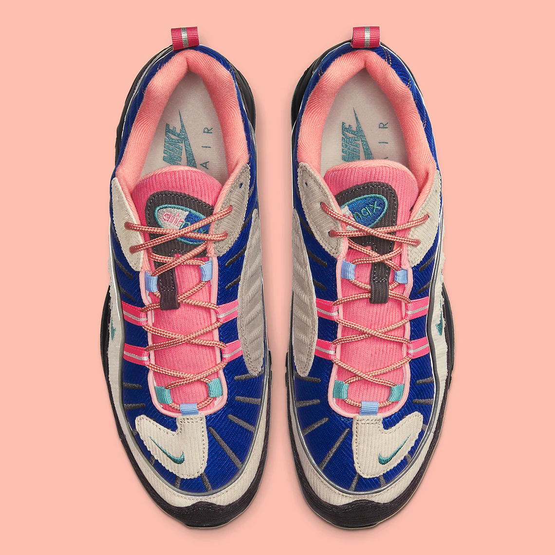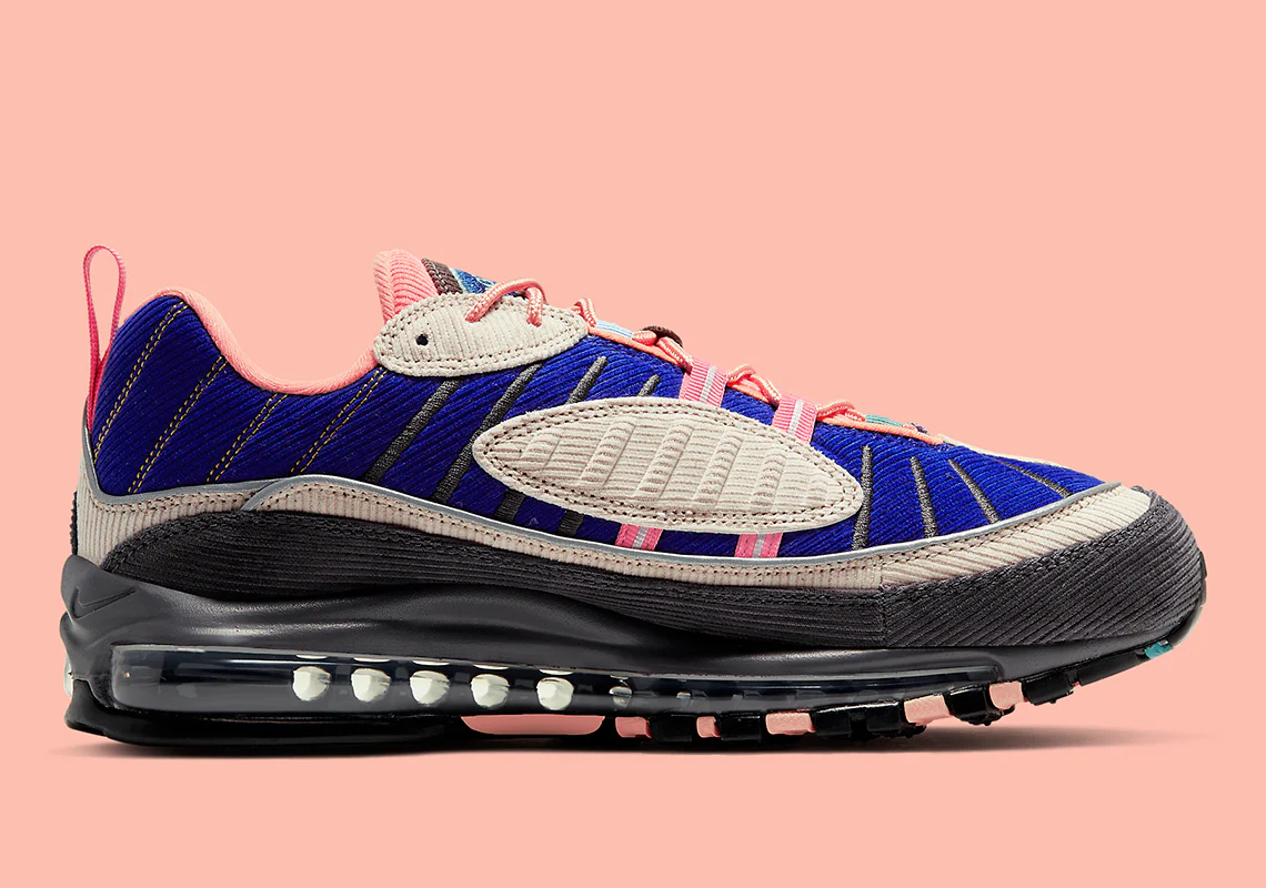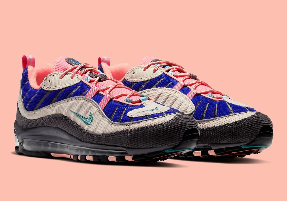 Construit entièrement de larges cordes de wal dans un assortiment de teintes saturées, la paire ne laisse étonnamment aucune tonalité ouvrir la voie; plutôt, son multi-mélange donne des parts presque égales aux violets profonds à la base, aux bronzages juste au-dessus du garde-boue teint en gris, et même aux roses pastels au niveau de la langue et de la sangle. Les Swooshes, à gauche miniatures, se complètent d’un vert aux teintes froides sur la pointe et le profil, tandis que les semelles s’habillent de manière extrêmement modeste dans des tons neutres accentués par une partie de la palette de base le long de sa bande de roulement.