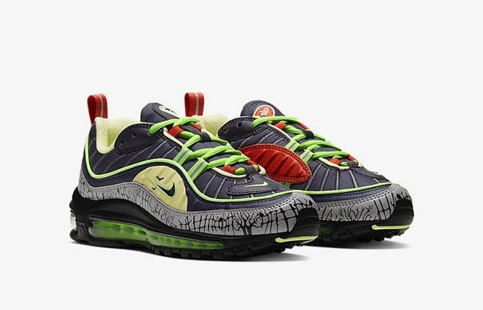 Alors qu’octobre est sur le point de montrer sa tête effrayante, Beaverton se prépare avec des décorations et des costumes imaginatifs, équipant une Air Max 98. Toute la philosophie des vacances prend forme le long de la silhouette complexe, chaque accent se connectant à une partie de l’affaire nocturne. Les garde-boue, qui contrastent dans leur bande gris ciment neutre, sont conçus pour imiter la toile de fond des cimetières hantés.