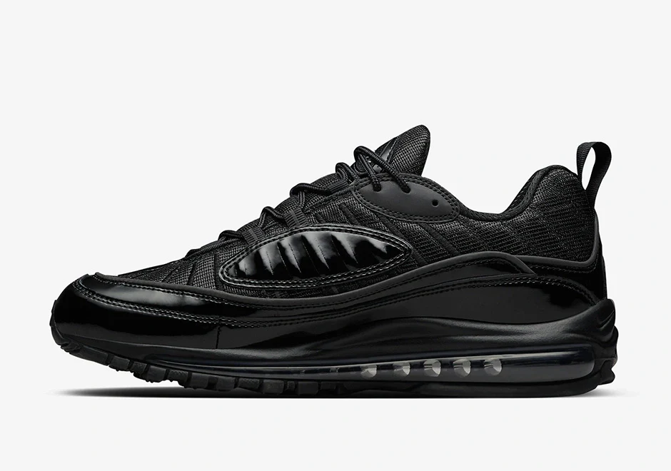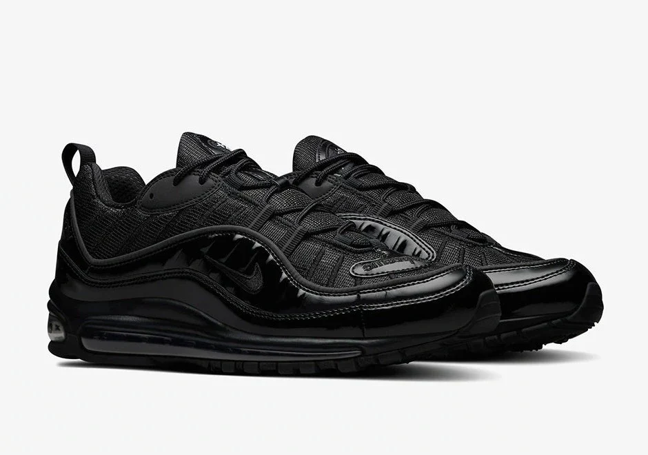 En 2016, Supreme s’est associé à Nike pour une collaboration sur un modèle inattendu, l’Air Max 98. Le look entièrement noir de la Supreme x Air Max 98 ‘Black’ est varié grâce à un mélange de matériaux. Combinant le mesh et le cuir verni, l’unité Air sur toute la longueur assure l’amorti sous le pied. Le Varsity Red sur la semelle intérieure et extérieure ajoute la seule couleur au look, avec la mention » World Famous « sur les talons.