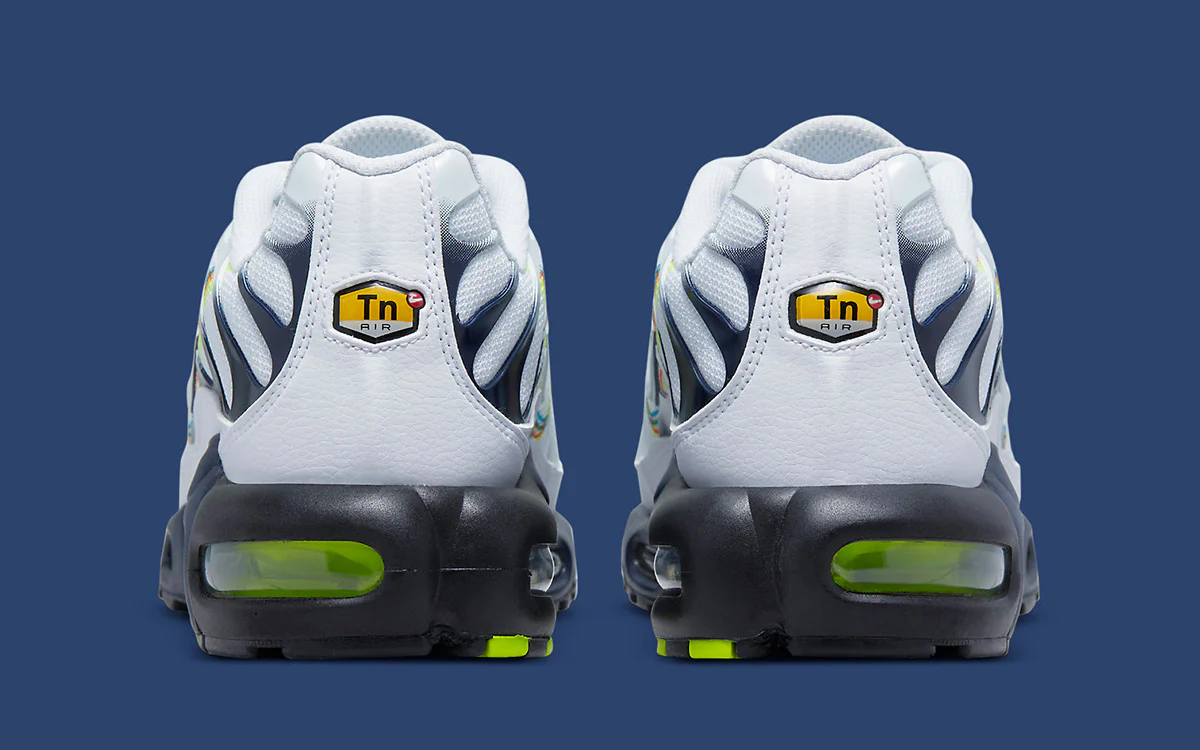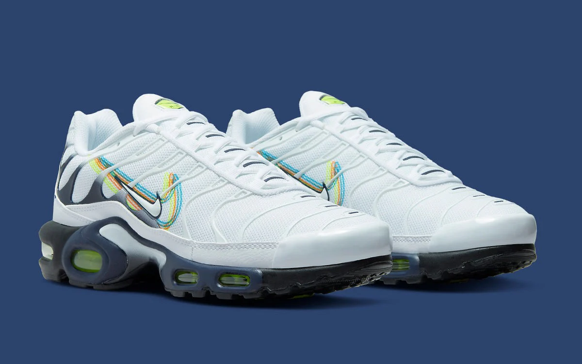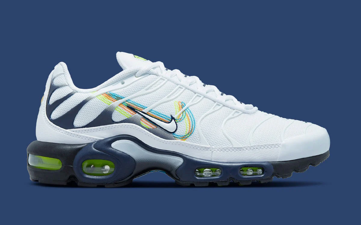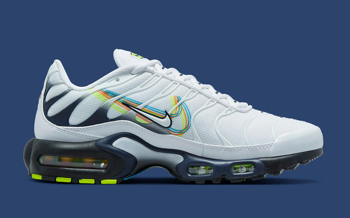 La Nike Air Max Plus 3D Swoosh White Volt Football Grey Blackened Blue revisite l’icône de 1998 avec une touche graphique et moderne centrée sur le légendaire logo Nike. Sa tige en mesh blanc éclatant, subtilement contrastée par des détails Football Grey et Blackened Blue, est dynamisée par un Swoosh 3D en Volt fluorescent, apportant de la profondeur et une identité visuelle percutante. Les emblématiques cages TPU ondulées rappellent l’ADN rebelle de la TN, tandis que la technologie Tuned Air assure un amorti ciblé, réactif et confortable pour accompagner la vie urbaine au quotidien. Entre design audacieux, palette chromatique moderne et héritage iconique, cette 3D Swoosh s’impose comme une sneaker incontournable pour les passionnés de TN et les amateurs de coloris originaux.