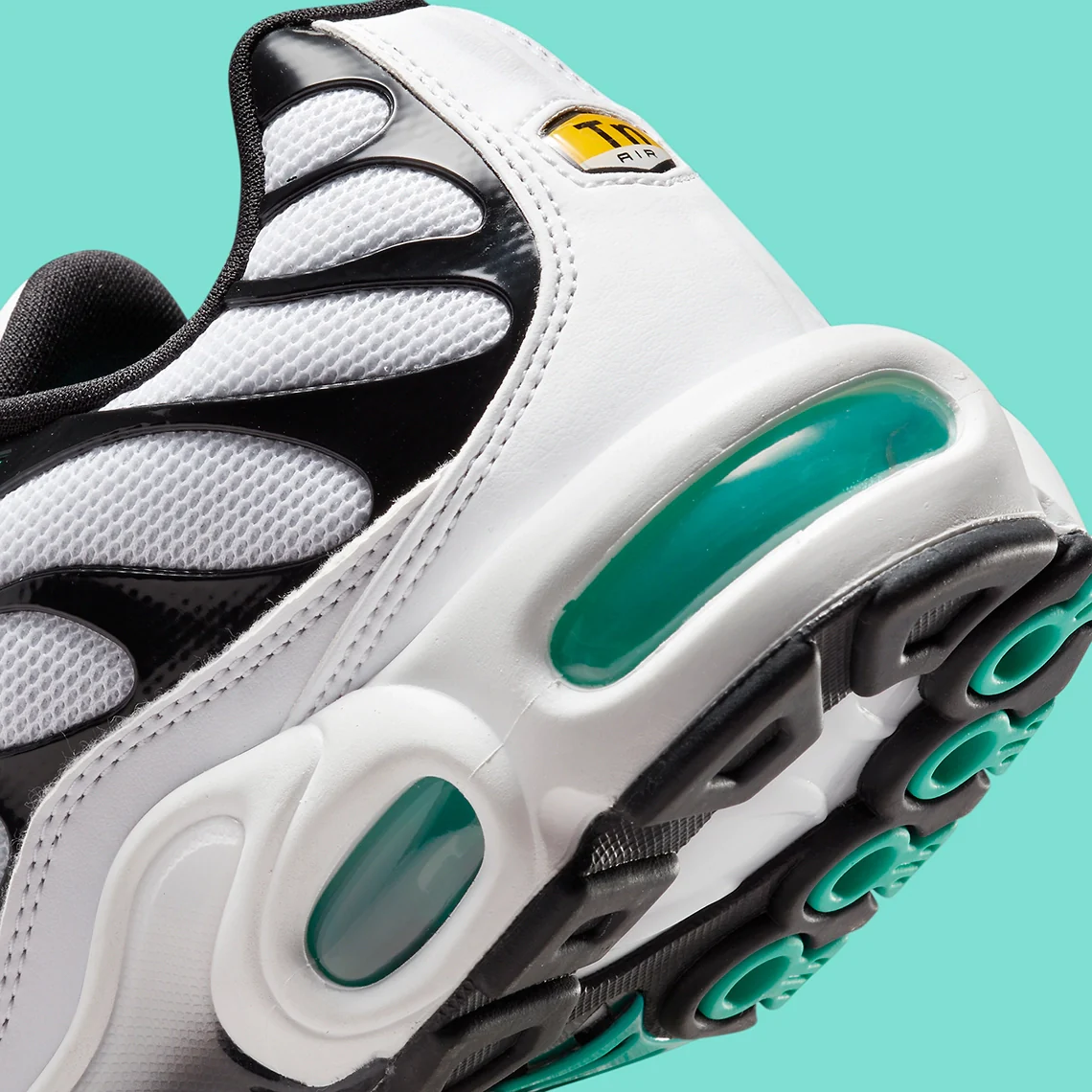 Sous le pied, la technologie Tuned Air assure un amorti réactif et précis, fidèle à la sensation unique des Air Max Plus. La semelle bicolore, mêlant blanc et touches jade, complète ce design inspiré, pensé pour ceux qui aiment les silhouettes iconiques revisitées avec audace et fraîcheur.