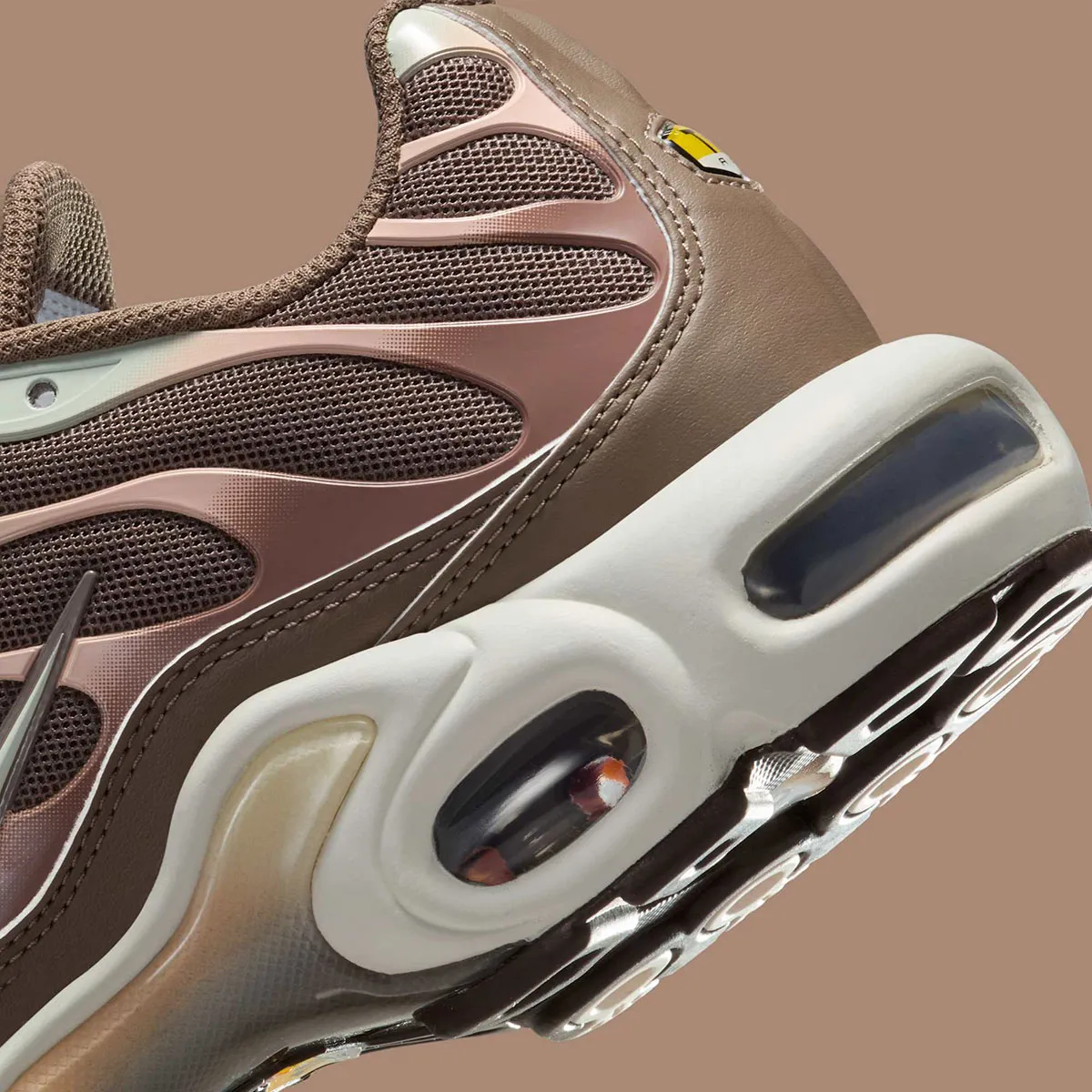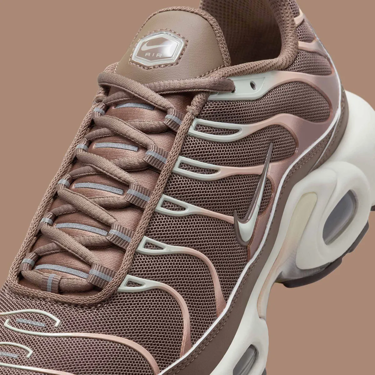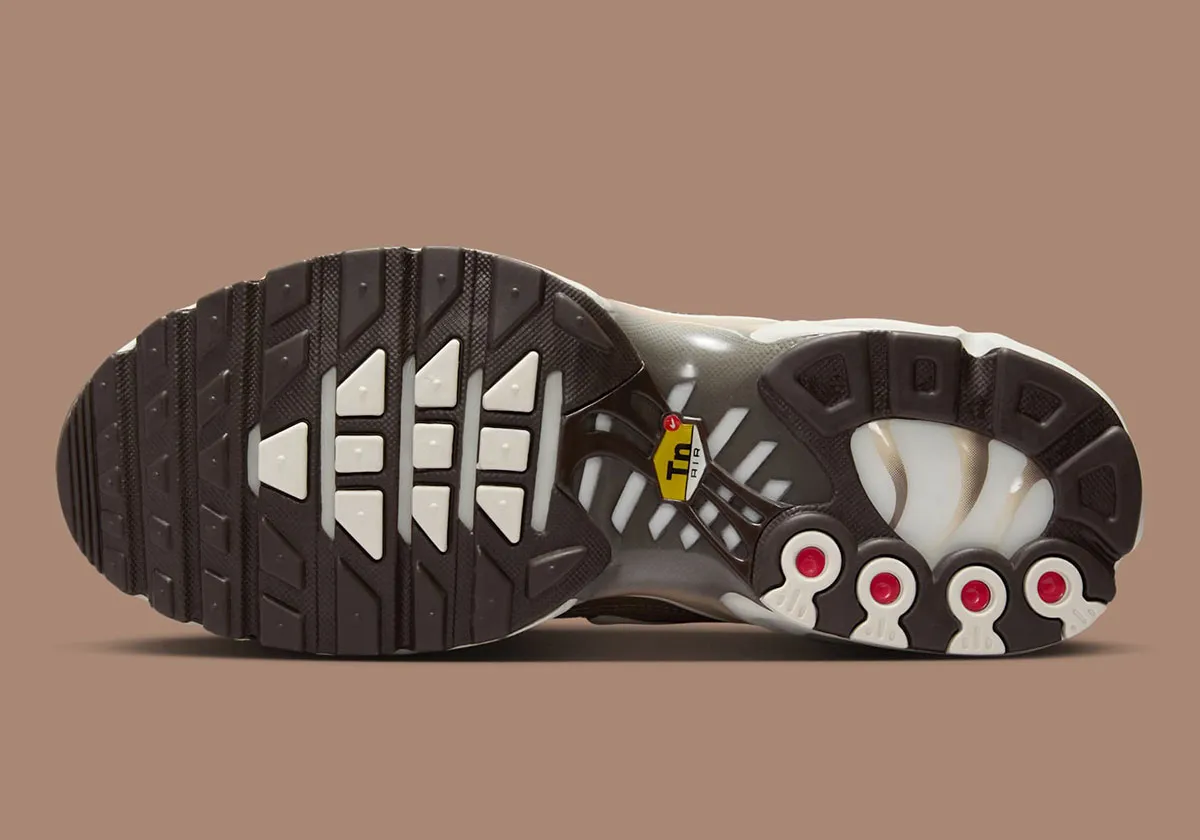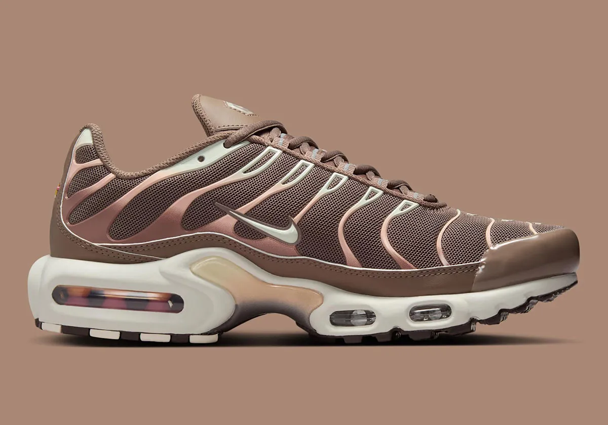 La Nike Air Max Plus Mink Brown / Baroque Brown / Sail / Metallic Silver revisite la silhouette emblématique “TN” avec un coloris neutre mais sophistiqué combinant base Mink Brown, détails Baroque Brown, semelle Sail et accents Metallic Silver. La tige est conçue en mesh respirant renforcé par les superpositions caractéristiques en TPU ondulé, assurant maintien, légèreté et durabilité. L’amorti intègre la technologie Tuned Air avec unité Air-Sole visible pour une absorption des chocs performante et un confort longue durée. La semelle extérieure en caoutchouc garantit une adhérence fiable sur diverses surfaces. Cette version, portant la référence DZ3671-200, qui s’inscrit dans l’héritage running des années 90, adopte une esthétique « earth-tone » raffinée : idéale pour les amateurs de sneakers rétro à la recherche d’un look urbain mature.