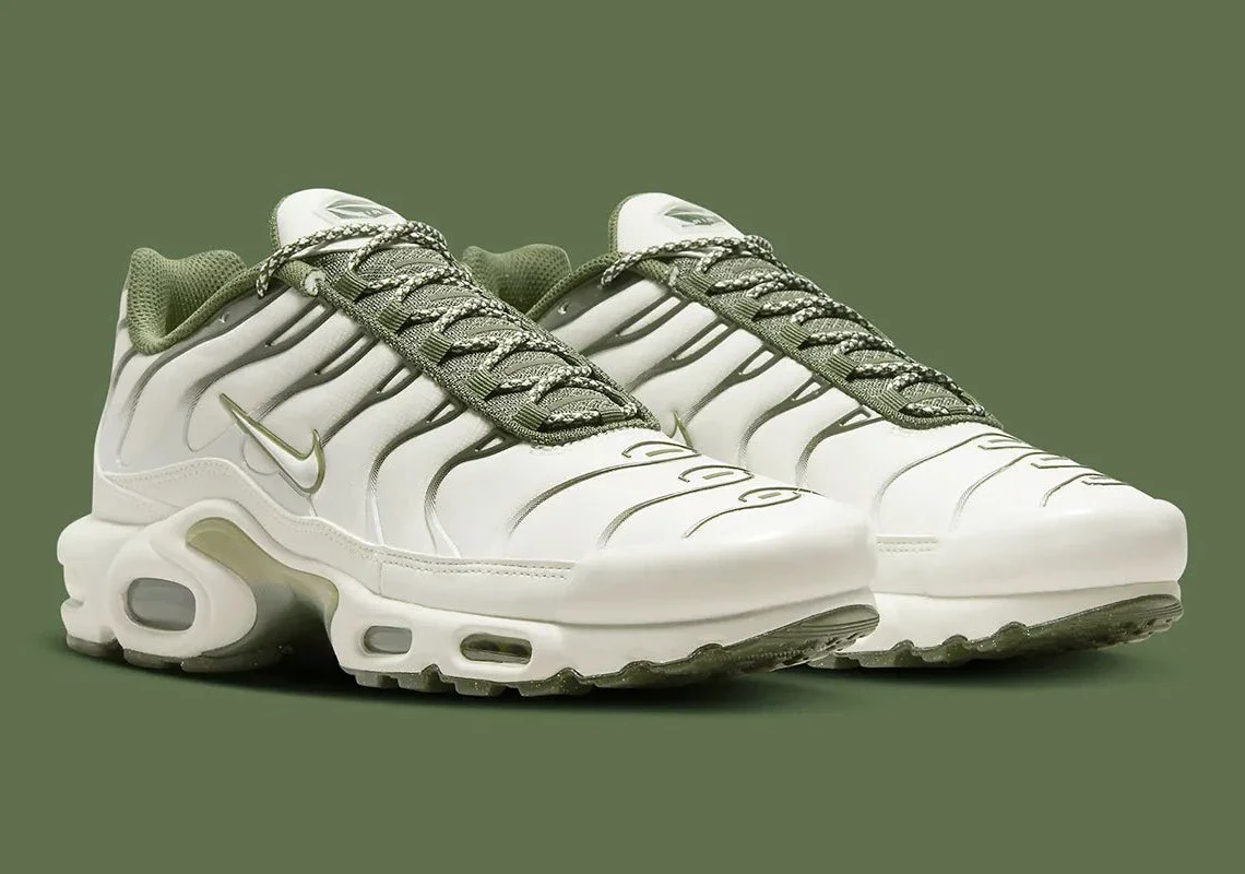 La Nike Air Max Plus Phantom Cargo Khaki revisite l’emblématique silhouette 1998 avec une allure urbaine et utilitaire raffinée. Sa palette mêle un mesh “Phantom” gris clair à des accents vert cargo khaki profond, illustrant une inspiration militaire chic. Les cages TPU ondulées, signature du modèle, structurent la tige tandis que les lacets tressés et le Swoosh bronze apportent des finitions premium. Dotée de la technologie Tuned Air, cette sneaker assure un amorti réactif, une stabilité supérieure et un confort durable. L’alliance entre design fonctionnel et héritage sportif fait de cette version un choix élégant pour le quotidien.