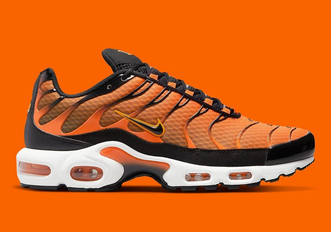 La Nike Air Max Plus Safety Orange Black impose un style incendiaire, fidèle à l’héritage audacieux de la Tn. Sa tige en mesh dégradé orange flamboyant et rouge profond symbolise la chaleur et l’énergie, contrastant puissamment avec les cages TPU noires qui structurent la silhouette emblématique de 1998. Le swoosh orange vif, les détails sombres et la semelle noire massive accentuent le caractère agressif et sportif de cette édition.