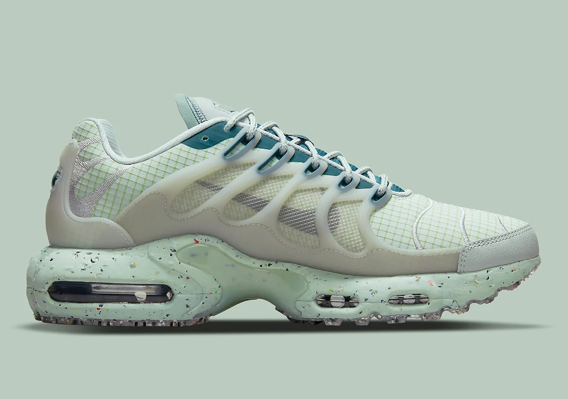 La Nike Air Max Terrascape Plus Mint Green revisite la mythique Tn avec une vision écologique, moderne et rafraîchissante. Sa tige en mesh recyclé vert menthe clair (“Mint Green”) est sublimée par des cages TPU translucides, offrant un look aérien et futuriste. Les accents blancs et crème sur la semelle et les détails du upper équilibrent parfaitement la palette, tandis que le branding Terrascape discret souligne son engagement durable.