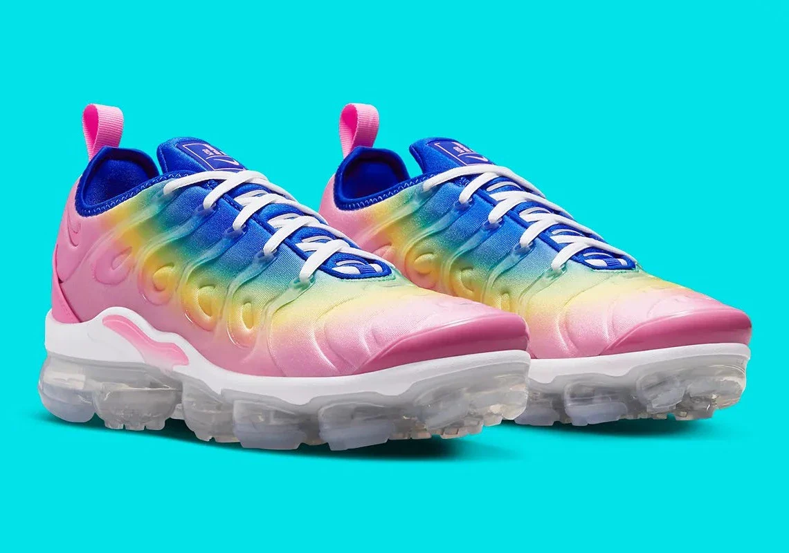 La Nike Air VaporMax Plus Rainbow fusionne l’héritage classique de la Air Max Plus et la technologie futuriste du VaporMax, dans une explosion de couleurs qui transforme la sneaker en pièce statement. Sa tige moulée en néoprèneaffiche un dégradé arc-en-ciel flamboyant, passant du jaune au violet en traversant l’orange, le rose et le bleu, rappelant les plus beaux sunsets tropicaux. Les cages TPU ondulées, signature de la TN, viennent structurer la silhouette tout en laissant briller le gradient multicolore.