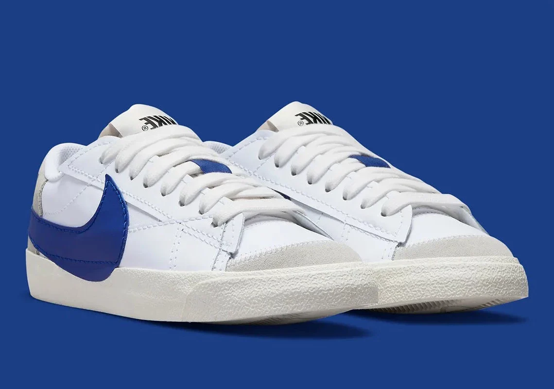 Nike sort chaque mois un nombre impressionnant de Blazers (Low et Mid), dont certains ne diffèrent que légèrement des précédents. La Blazer Low Jumbo, cependant, est une version rafraîchissante, dont le grand et audacieux Swoosh a été introduit il n’y a pas très longtemps. La chaussure a déjà rassemblé un large assortiment de couleurs, et elle est sur le point d’ajouter un bleu vif au mélange.
