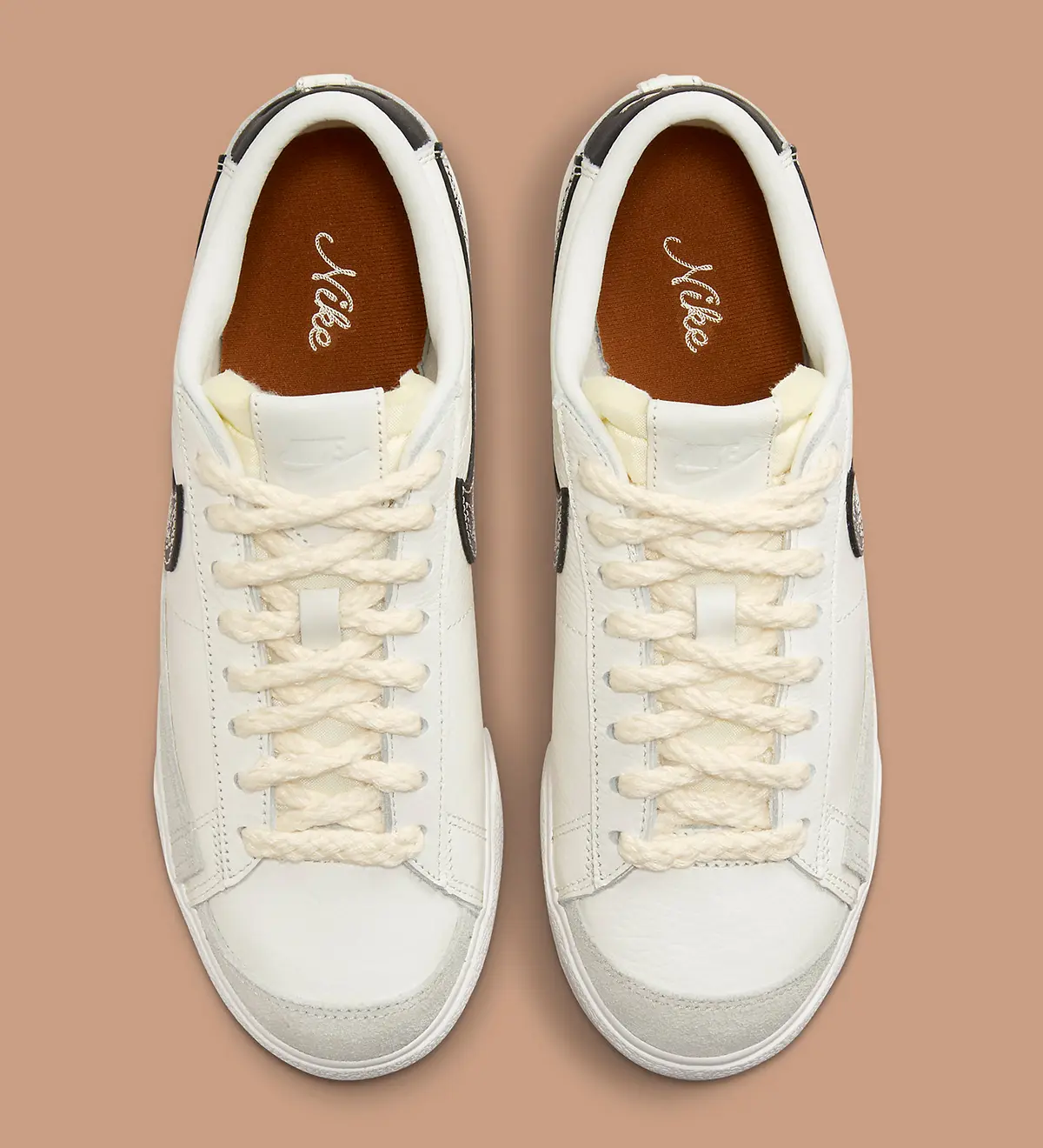 Centrés autour d’une construction voile sur voile, les caractéristiques phares de la paire ne résident pas dans les textiles utilisés ni dans leur sélection de couleurs, mais avec le fil spécial brodé sur les superpositions Swoosh, le design à coutures contrastées donne une sensation Mid-Western, avec un branding sur le thème au talon et à la semelle intérieure ajoutant au charme de la paire. Des éléments raffinés sont également appliqués aux languettes et aux lacets, avec une finition en mousse apparente et des lacets en forme de fil moelleux qui complètent le design.