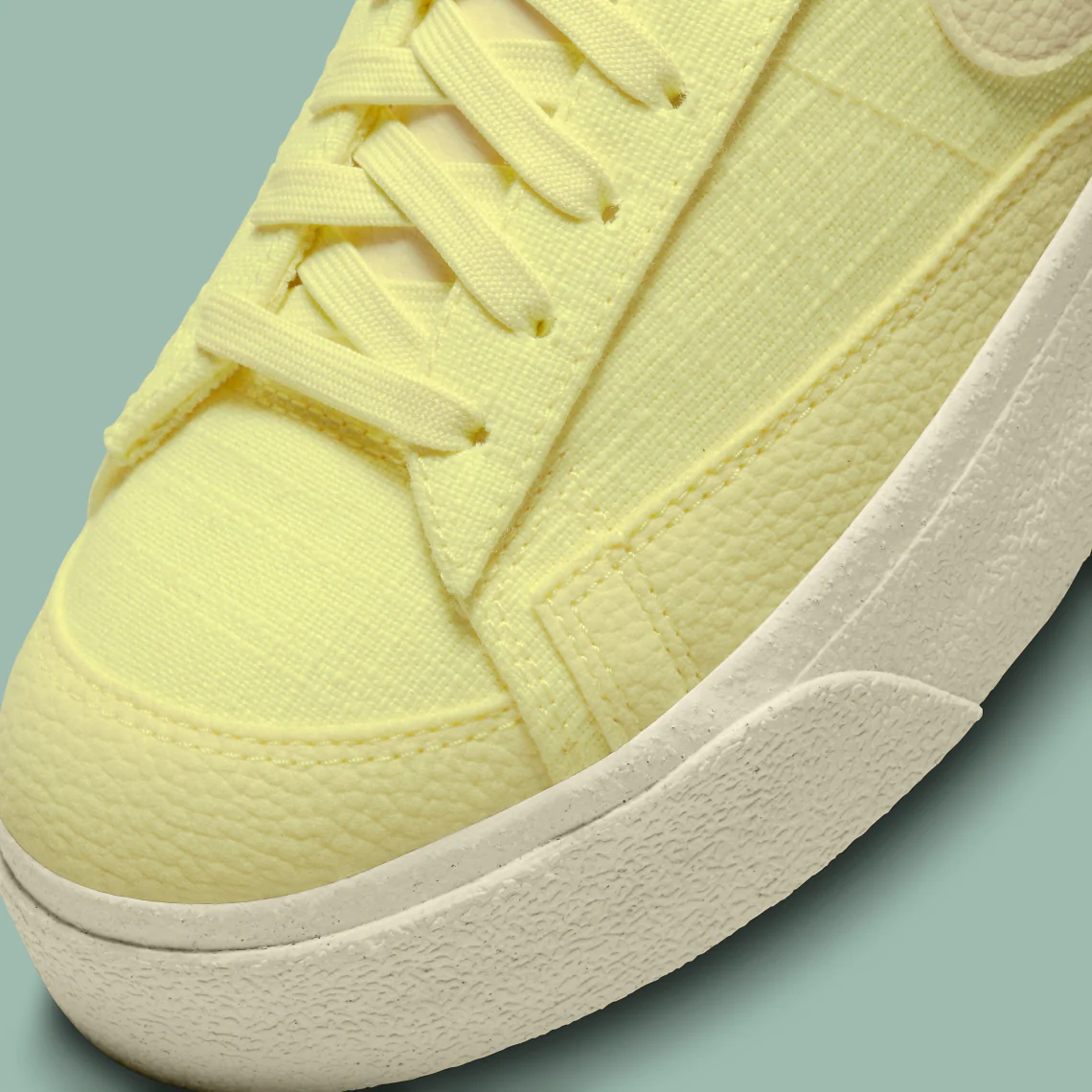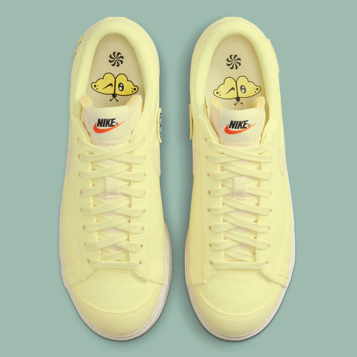 Présentant déjà d’autres modèles classiques comme l’Air Force 1, la capsule printanière applique une cure de jouvence jaune clair à la version moderne de la toute première sneaker Nike Basketball. Un mélange de cuir foulonné et de nylon reprend la tige, l’ancien matériau se retrouvant à l’avant-pied, au profil et au talon. Des graphiques sur le thème entrent dans le mélange sous forme de patchs vers l’arrière du Blazer Low, tandis que d’autres sont imprimés sur les doublures de chaussettes. Sous les pieds, les semelles exagérées renoncent à tout détail lié au « Air Sprung », optant à la place pour un style blanc cassé qui permet à ses homologues de se réjouir sous les projecteurs.