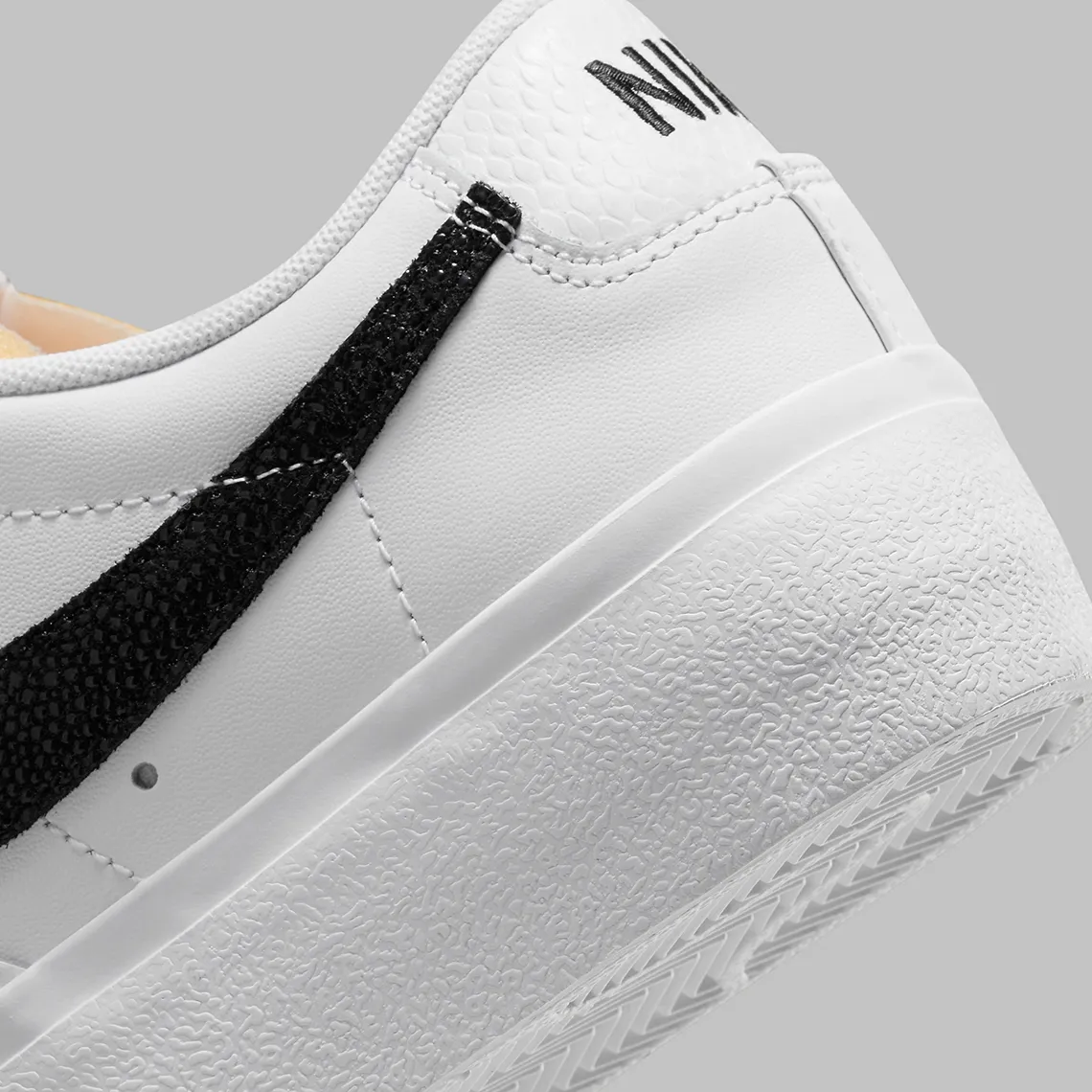 Tout simplement identiques à son ensemble prototypique blanc et noir, le garde-boue de l’avant-pied et les autres empiècements en cuir abandonnent la construction en daim délavé de son prédécesseur pour un textile Shagreen haut de gamme. L’esthétique somptueuse orne également la languette arrière aux côtés des Swooshes noirs latéraux et médiaux. La mousse exposée dans la languette et la tenue surélevée sous le pied évoquent à la fois le passé et l’avenir du streetwear lifestyle pour compléter les éléments de conception du dernier crescendo de la ligne Platform.