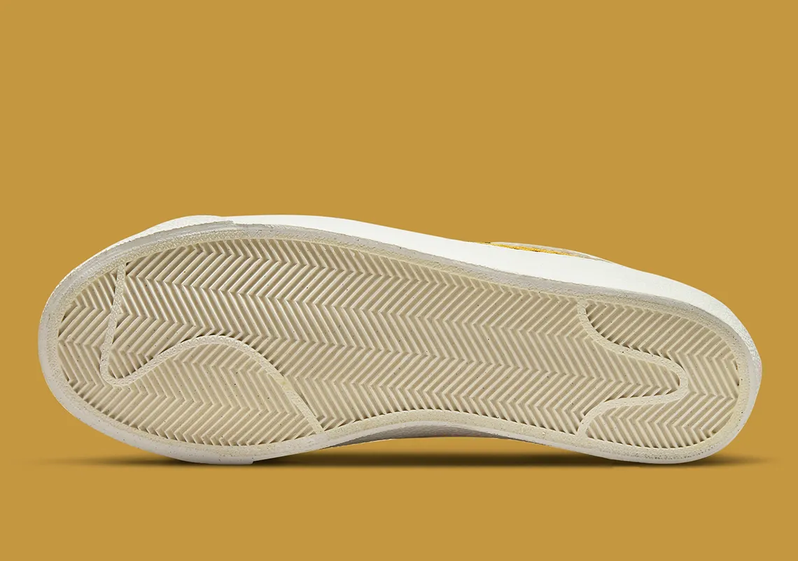 Contrairement aux Air Force 1 et Air Max Pre-Day du même pack, cette Blazer Low manque plutôt de couleurs vibrantes. Au lieu de cela, la construction en cuir, l’unité de dentelle et la semelle intercalaire sont habillées de blanc cassé, amplifiant efficacement le Swoosh personnalisé sur le dessus. Conformément au thème mentionné ci-dessus, le logo est assimilé à une vague, les broderies noires foncées créant cette connexion avec des ondulations et des éclaboussures. Cependant, cela ne concerne que l’écusson, car la base du chèque lui-même présente un filet ouvert aux tons chauds.