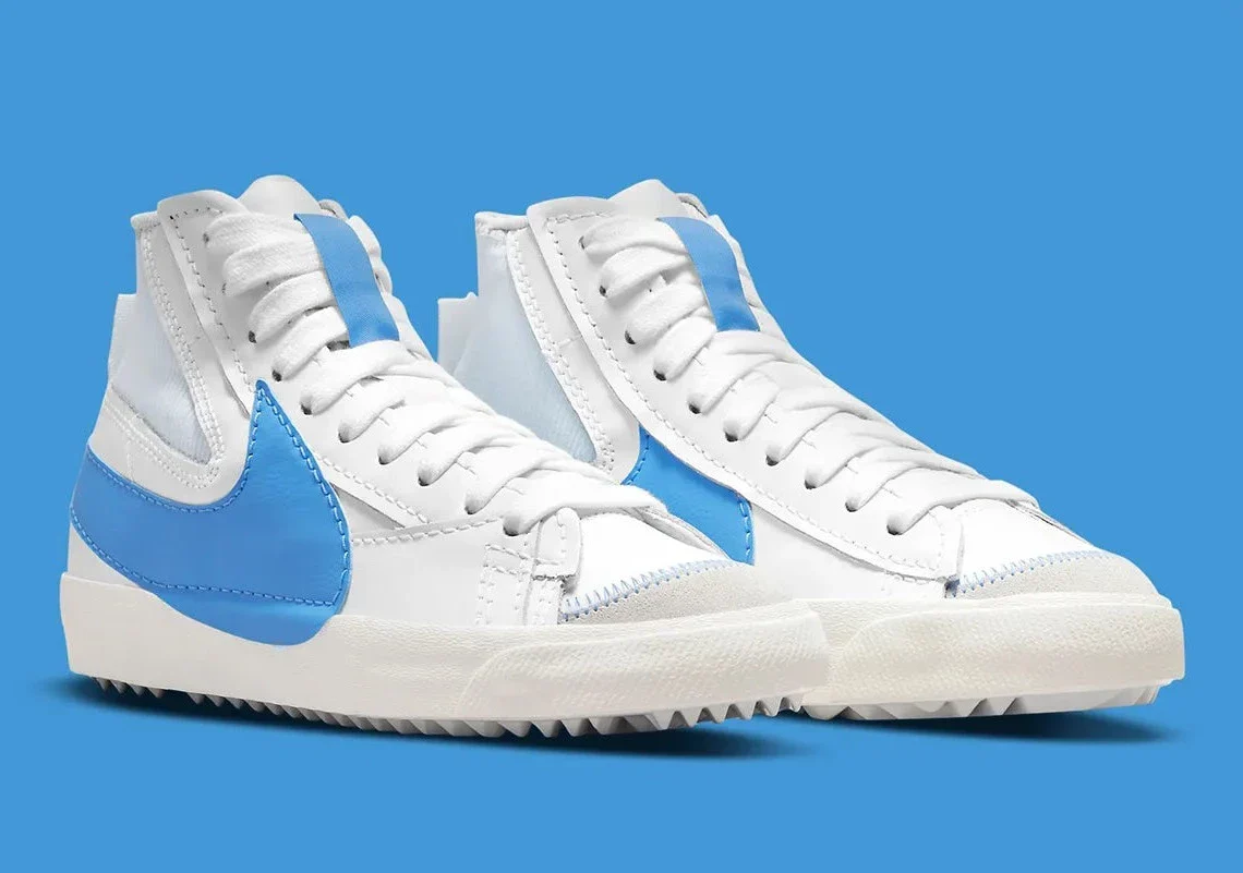 Souvent comparée à Off-White, la Nike Blazer Mid Jumbo est une expérience rafraîchissante en termes de proportions. Bien que très éloignés de la construction originale, les coloris sont relativement familiers, utilisant souvent le blanc dans sa quasi-intégralité.