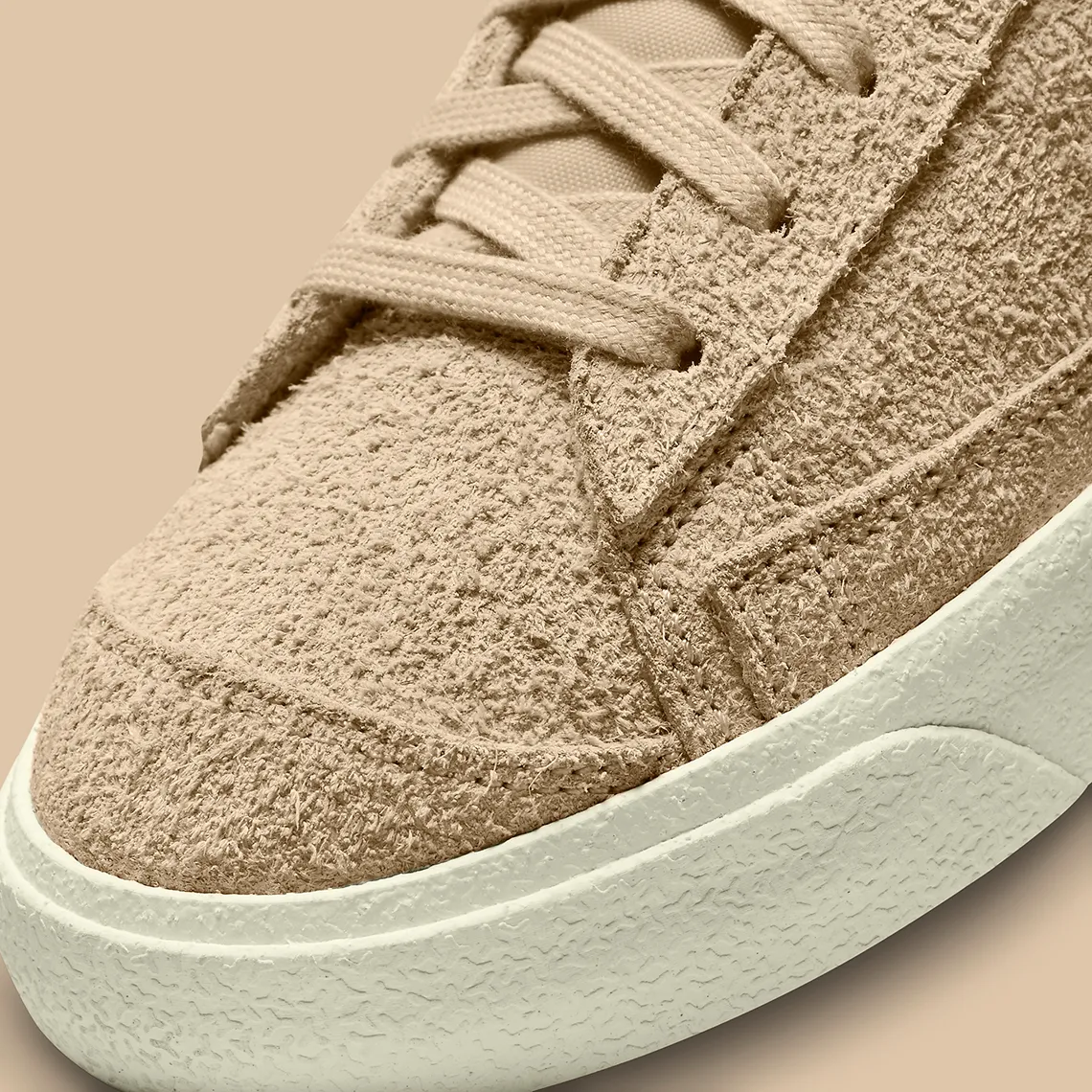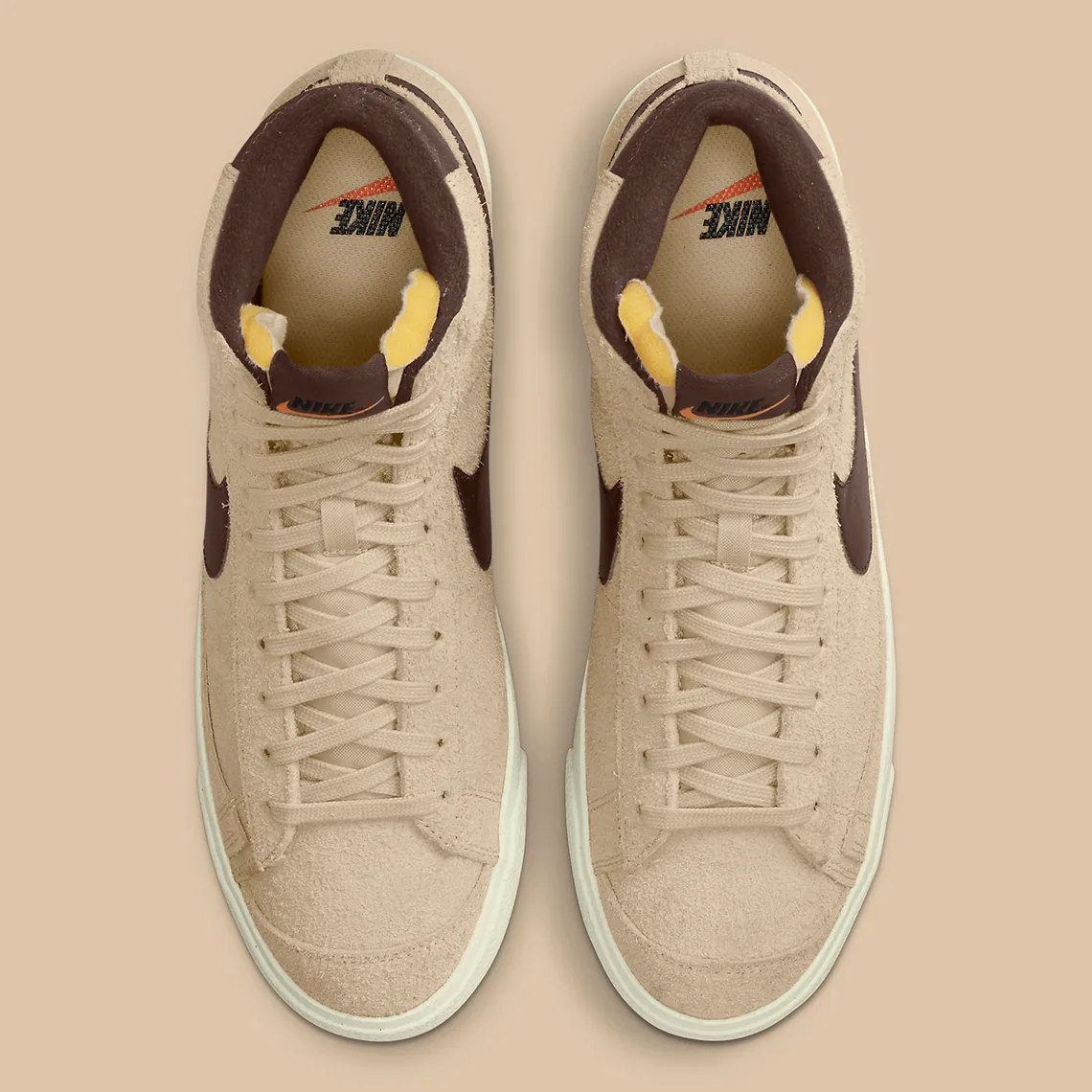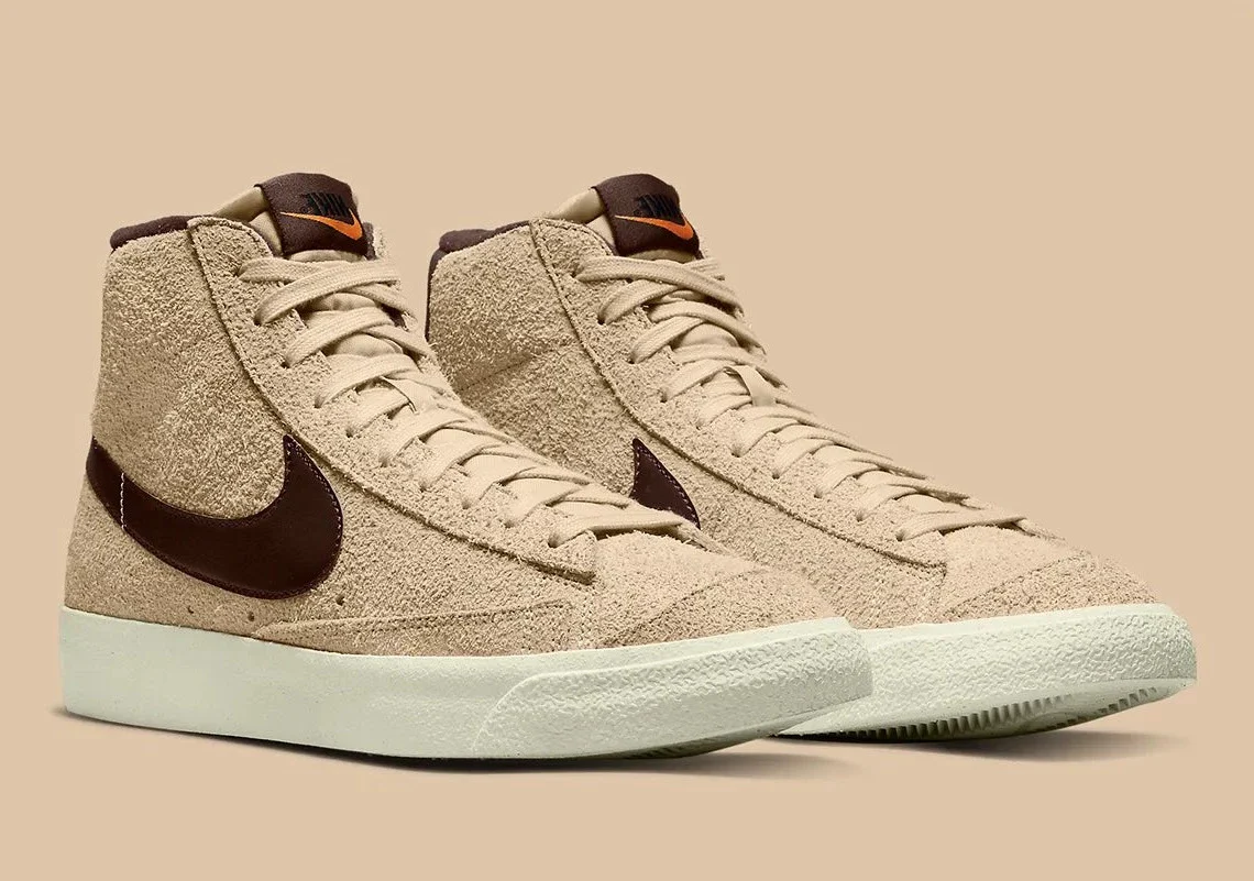 Si cette Blazer était une commande, ce serait sans aucun doute un latte, car la tige en daim poilu de la chaussure imite la couleur laiteuse. Les parties adjacentes célèbrent apparemment les ingrédients séparés de la boisson, car la semelle est inondée d’une finition « Sail », tandis que le Swoosh, la languette du talon, l’étiquette de la languette et la doublure présentent une teinte semblable à celle d’un expresso. Ailleurs, la marque Nike ne s’écarte pas loin de son parcours habituel, teignant son texte d’un noir foncé et ses carreaux d’un orange vif.