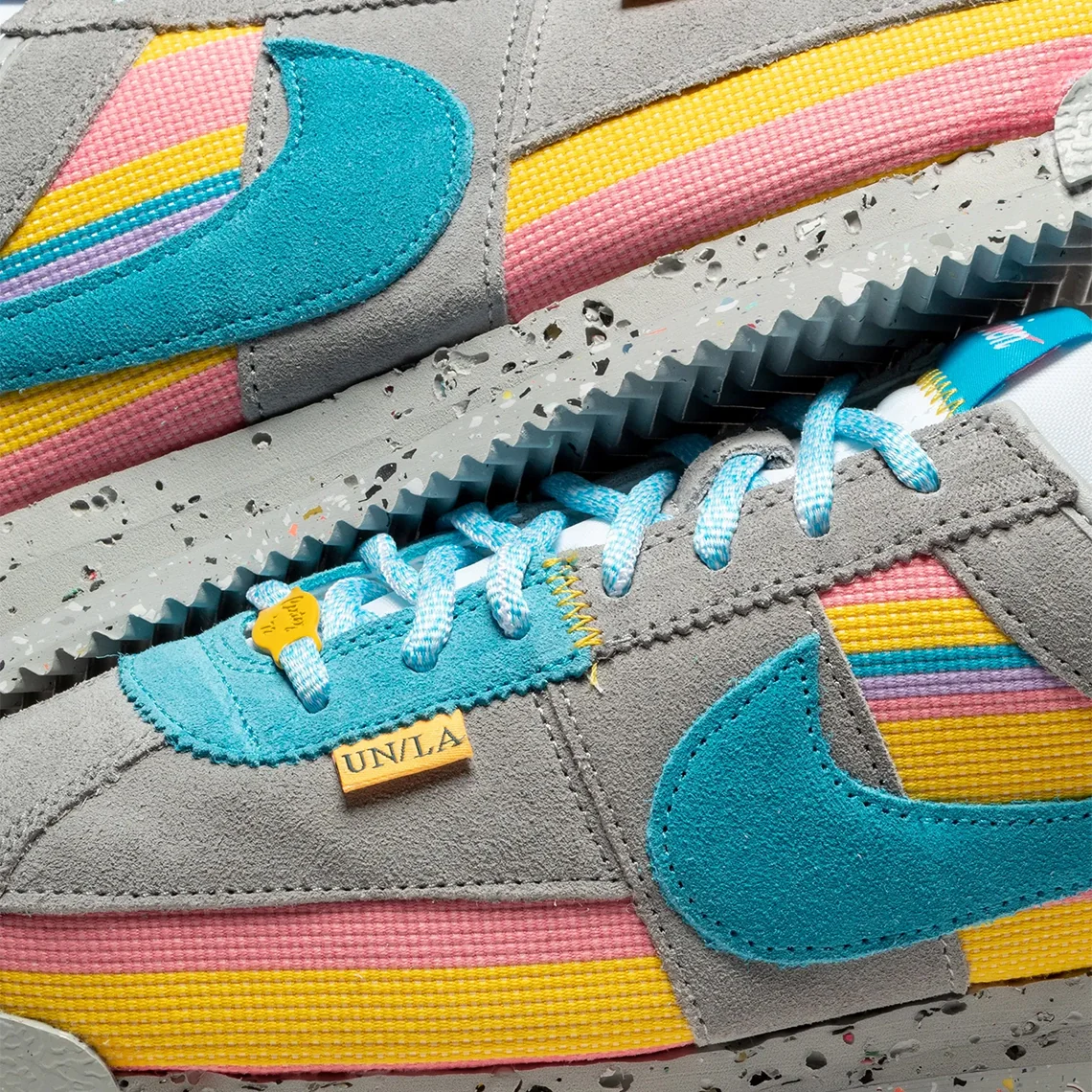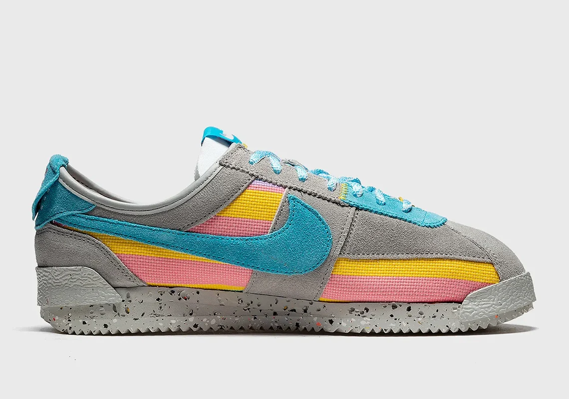 Disponible en gris fumée, bleu fury, coral chalk, varsity maize, et lilas, cette Union x Nike Cortez présente des superpositions grises et des sous-couches textiles multicolores. La pointe et le talon en caoutchouc renforcé que l’on retrouve sur les autres paires sont à nouveau présents, tout comme la semelle intermédiaire Crater Form et la semelle extérieure Nike Grind. Des lacets bleu clair sont fournis en standard, avec deux jeux supplémentaires à votre disposition. Le tout est présenté dans un emballage spécial.