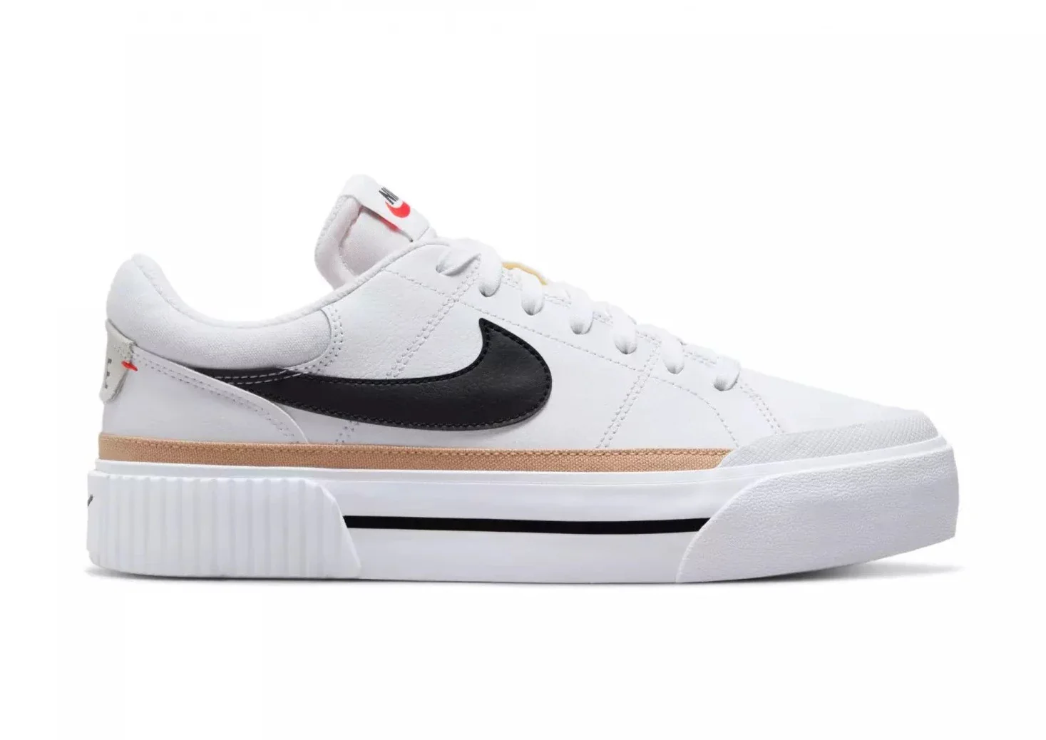 Comme l’indique la partie « Lift » du nom de la basket, une semelle plate-forme est utilisée, élevant le modèle avec un style très tendance. Cependant, ce n’est pas la seule caractéristique notable. Cette version de la Court Legacy Lift est ornée d’un Swooshes en cuirdans un coloris « Black ».