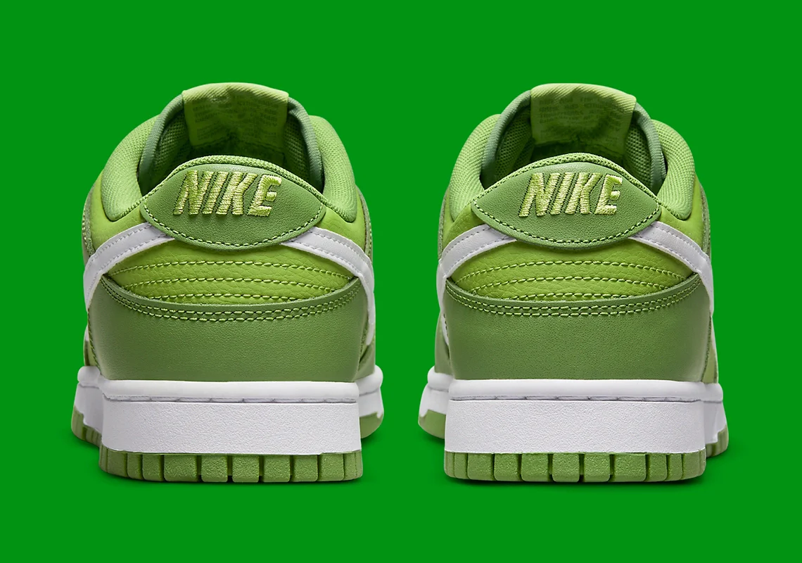 Cette Nike Dunk Low Chlorophyll devait célébrer la Saint Patrick, malheureusement des retards de production ont retardés sa sortie. Heureusement les trèfles à quatre feuilles, les pots d’or et autres ne sont nulle part en vue, le design privilégiant un look simple, à trois tons. Sur les superpositions et la base, la paire utilise une nuance de vert foncé et clair, respectivement, tandis que les lacets, le Swoosh et la semelle intermédiaire optent pour une finition blanche neutre. Enfin, le marquage sur la languette, la semelle intérieure et le talon complète la palette en complément de ses parties colorées.