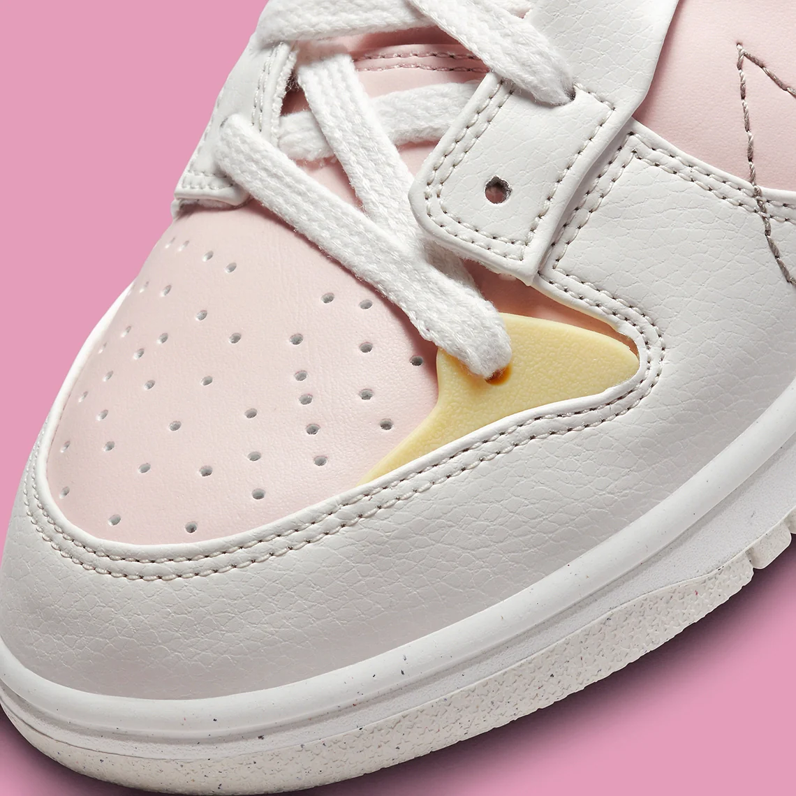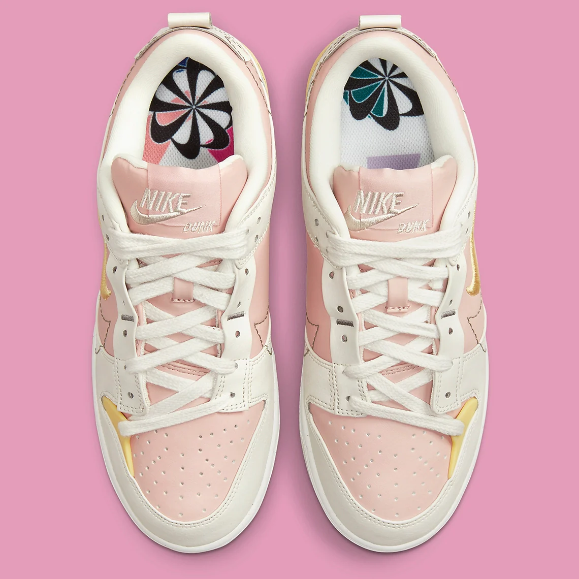 La Nike Dunk Low Disrupt 2 n’a peut-être pas détrôné la version originale du modèle de 1985 de Peter Moore, mais elle a gagné un public considérable. Récemment, le modèle de basket-ball a fait l’objet d’un relooking mode avec des couches de base « Pink Oxford » recouvertes de blanc cassé et de jaune.