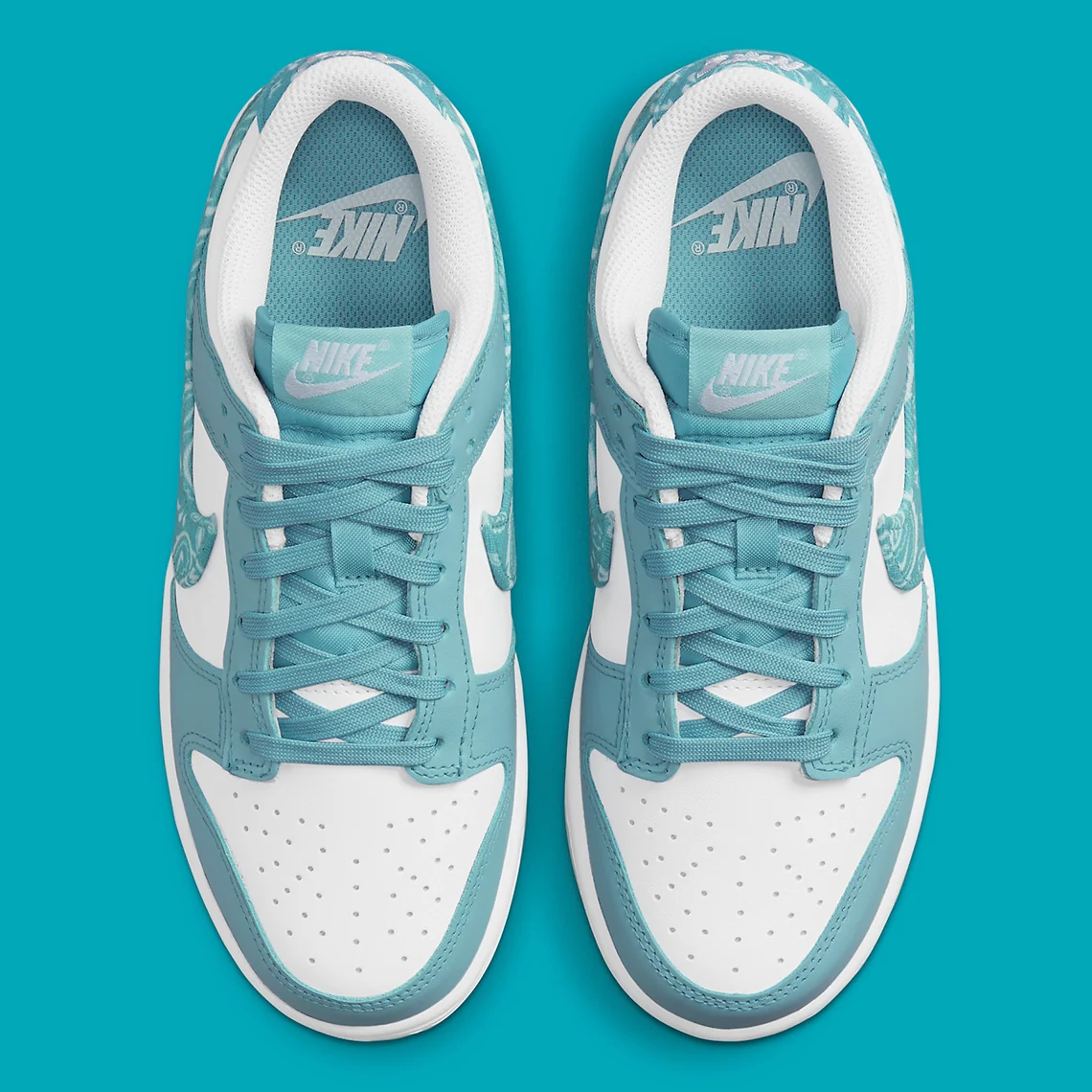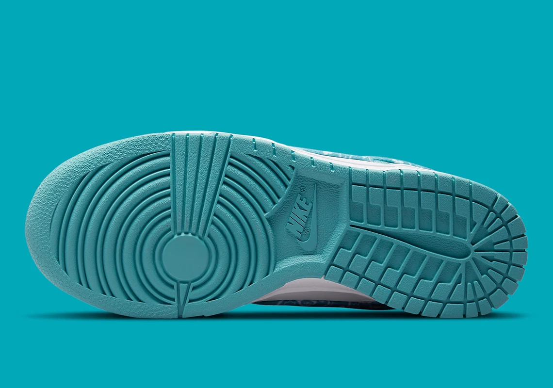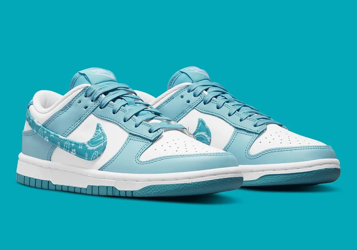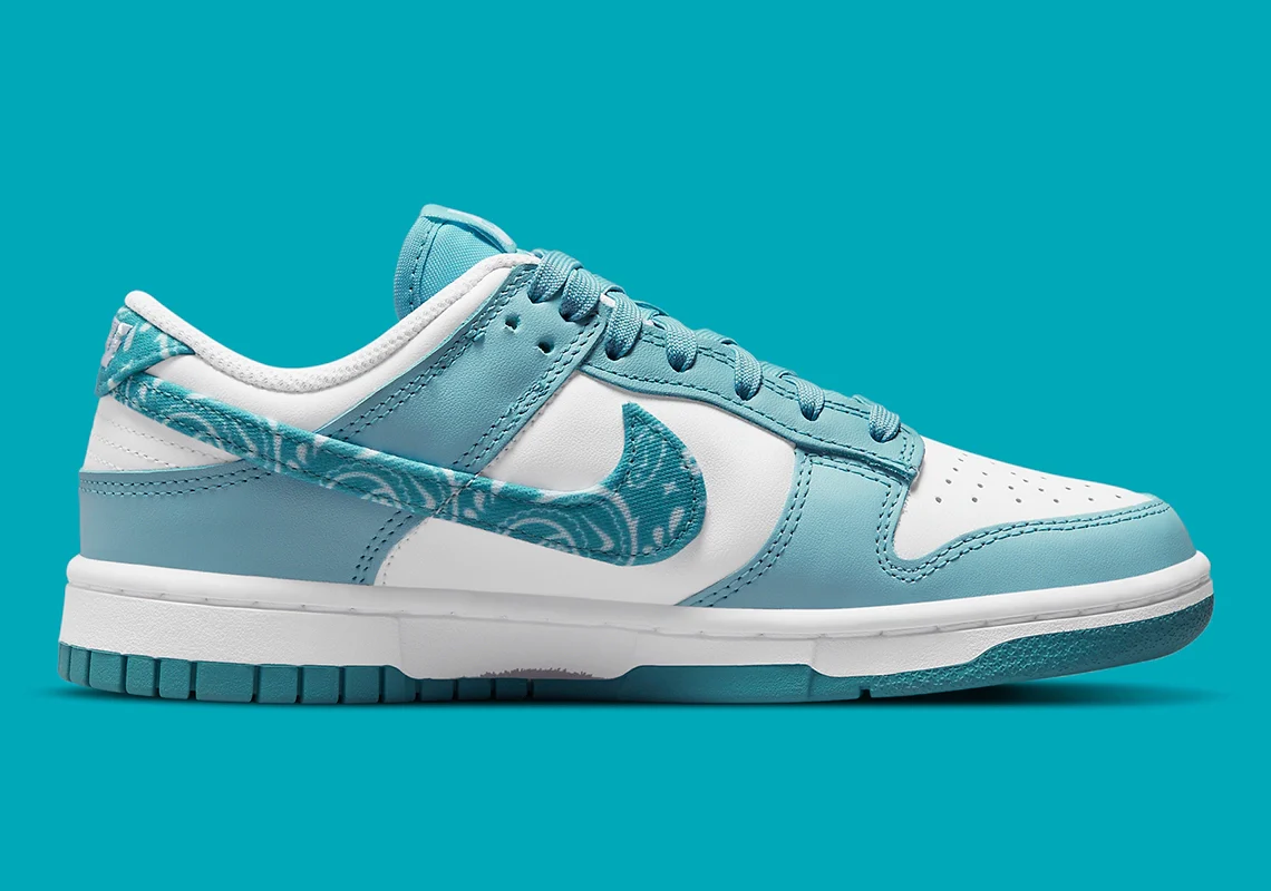 Bien qu’il nécessite un certain niveau de soin pour être utilisé de manière appropriée, le paisley s’est emparé de nombreuses marques. Nike ne fait pas exception à la règle et applique ce motif sur les Dunk Low. Dans les deux cas, le Swoosh a fait preuve d’un peu de retenue. Les coloris eux-mêmes offrent un look bicolore classique, avec un bleu ciel vif sur une base blanche standard. Ce n’est que le long de la bande latérale et de la languette du talon que le paisley est affiché, sa base et ses détails floraux reflétant la palette sur laquelle il se trouve.