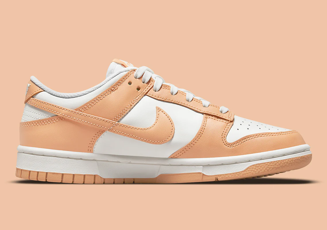 La «Harvest Moon» susmentionnée est la vedette du spectacle, habillant les superpositions en cuir ainsi que le Swoosh, l’étiquette de la langue et la semelle extérieure. Ailleurs, au-dessus de la base en cuir et de l’unité de dentelle, une teinte «Sail» complète la palette, complétant un ajout plutôt de bon goût à la gamme Dunk’s Holiday 2021.