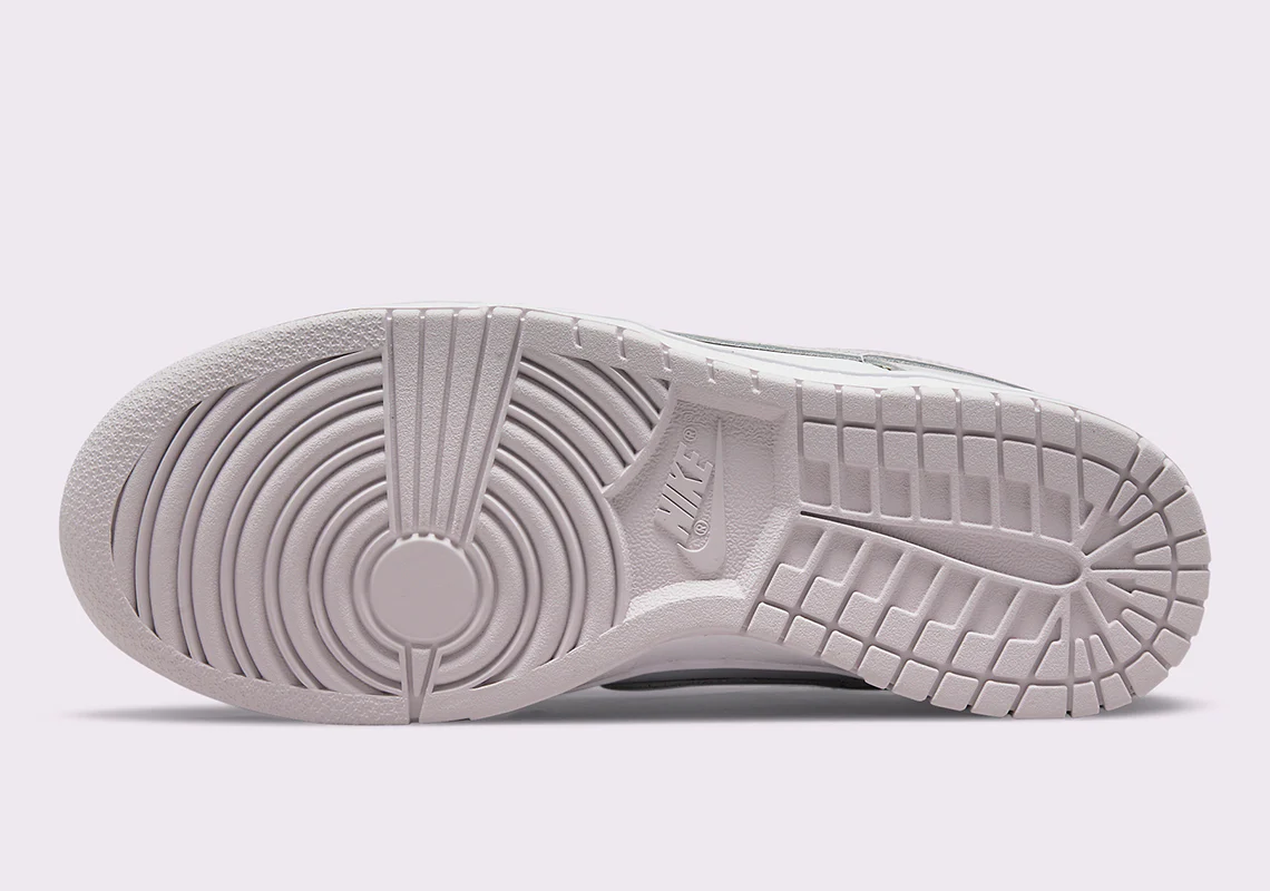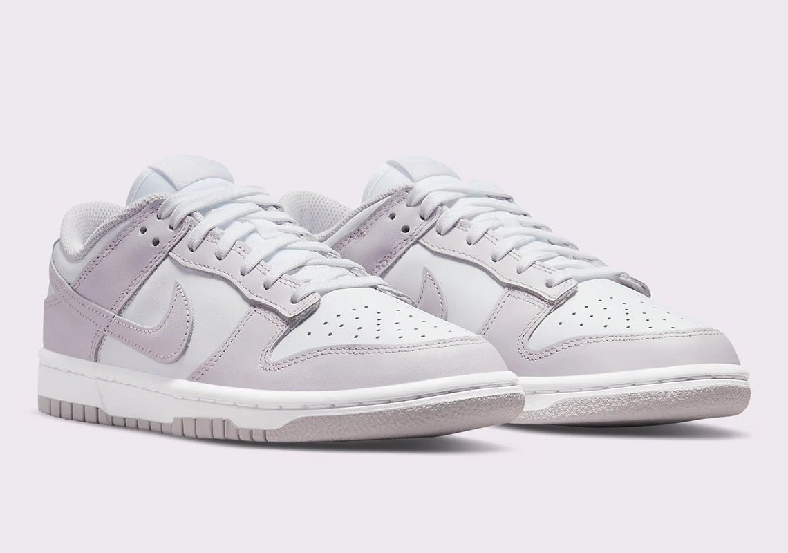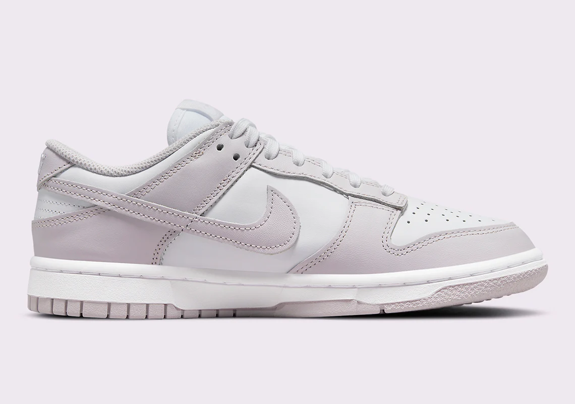 Semblable à certains des coloris les plus emblématiques du modèle, le dernier style Nike Dunk Low Light Violet se livre à une base en cuir lisse blanc. Les superpositions sur l’avant-pied, le long de la langue et autour du talon présentent ensuite un ton contrasté « Light Violet » qui ressemble à une entrée tardive au printemps. La marque sur la languette, la doublure de la chaussette et le panneau supérieur du talon participent également au ton pâle, tout comme la semelle extérieure de la nike dunk