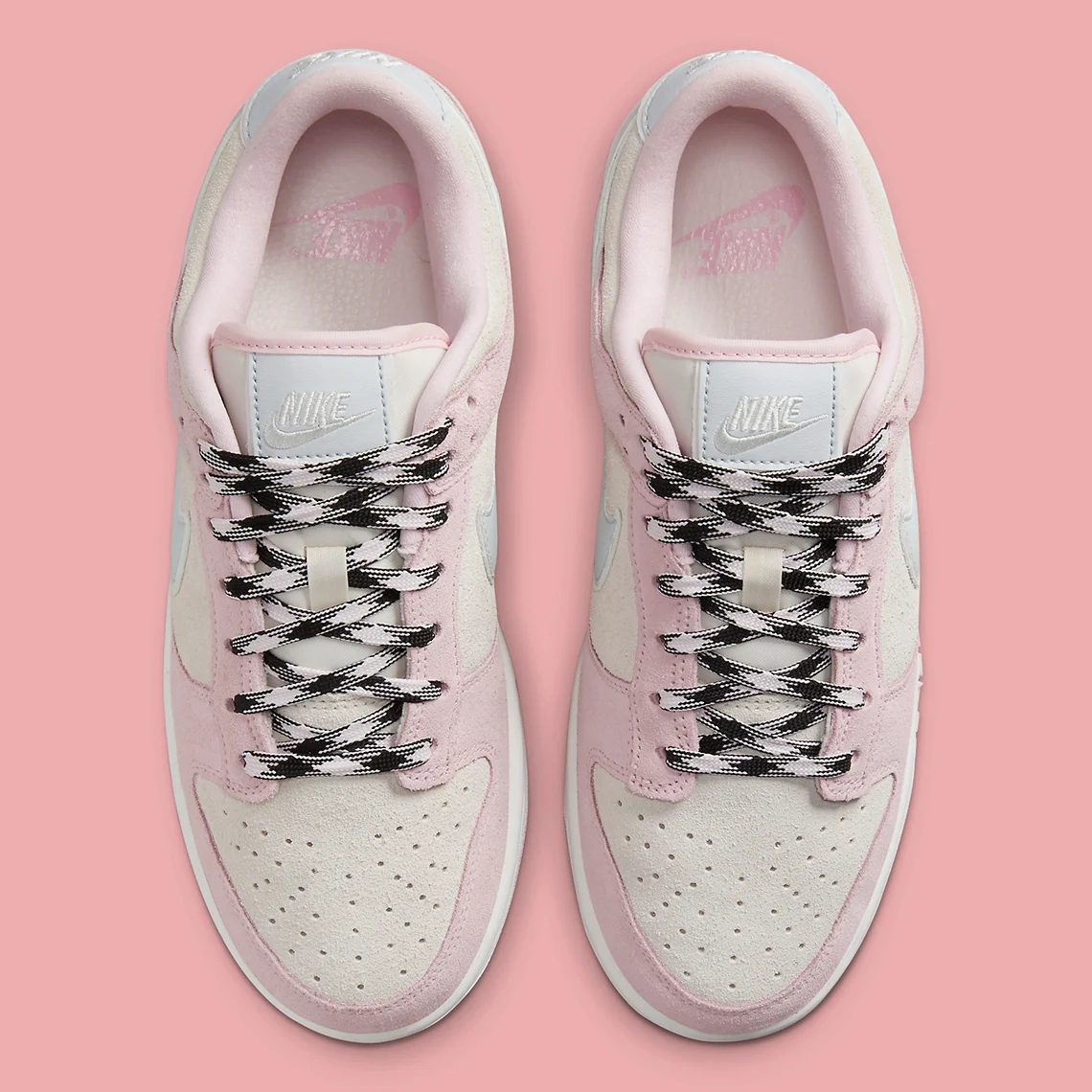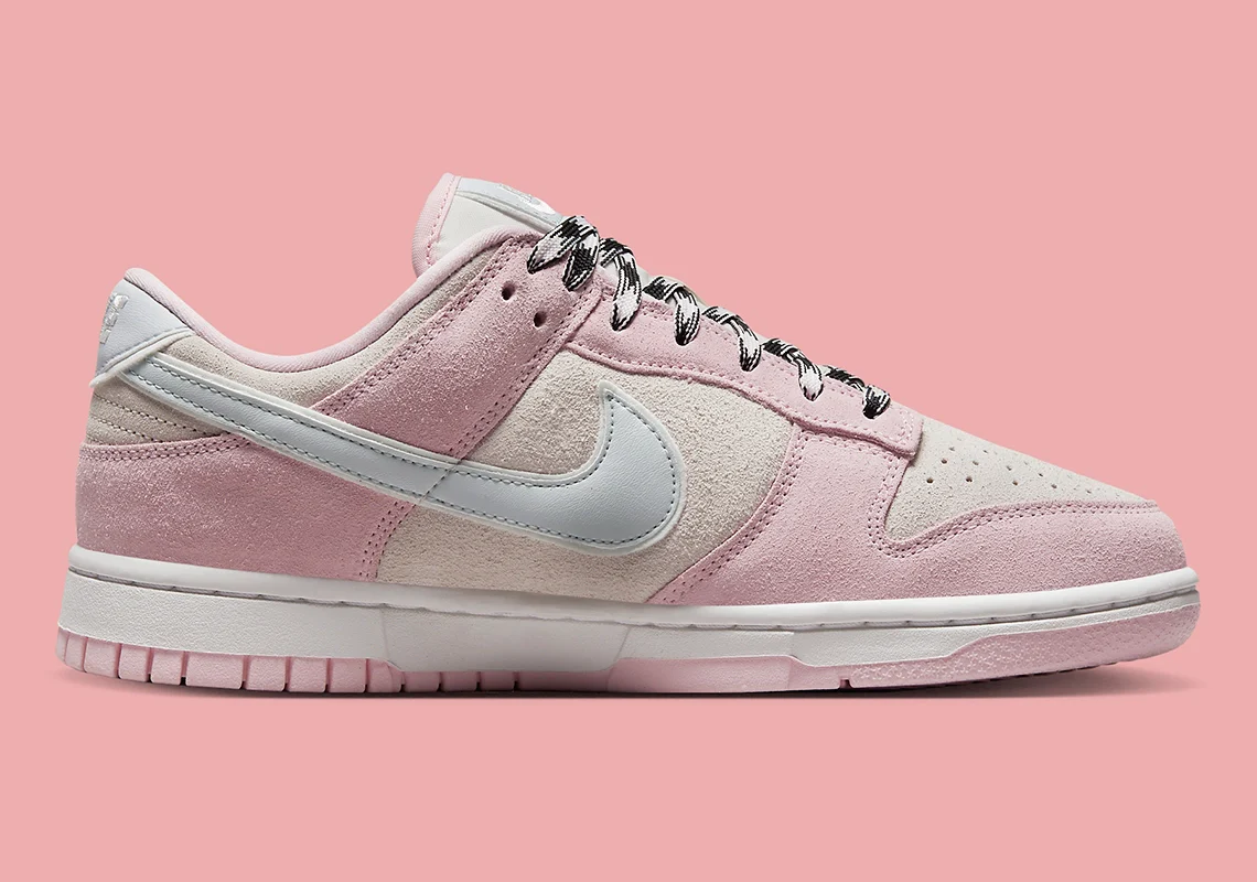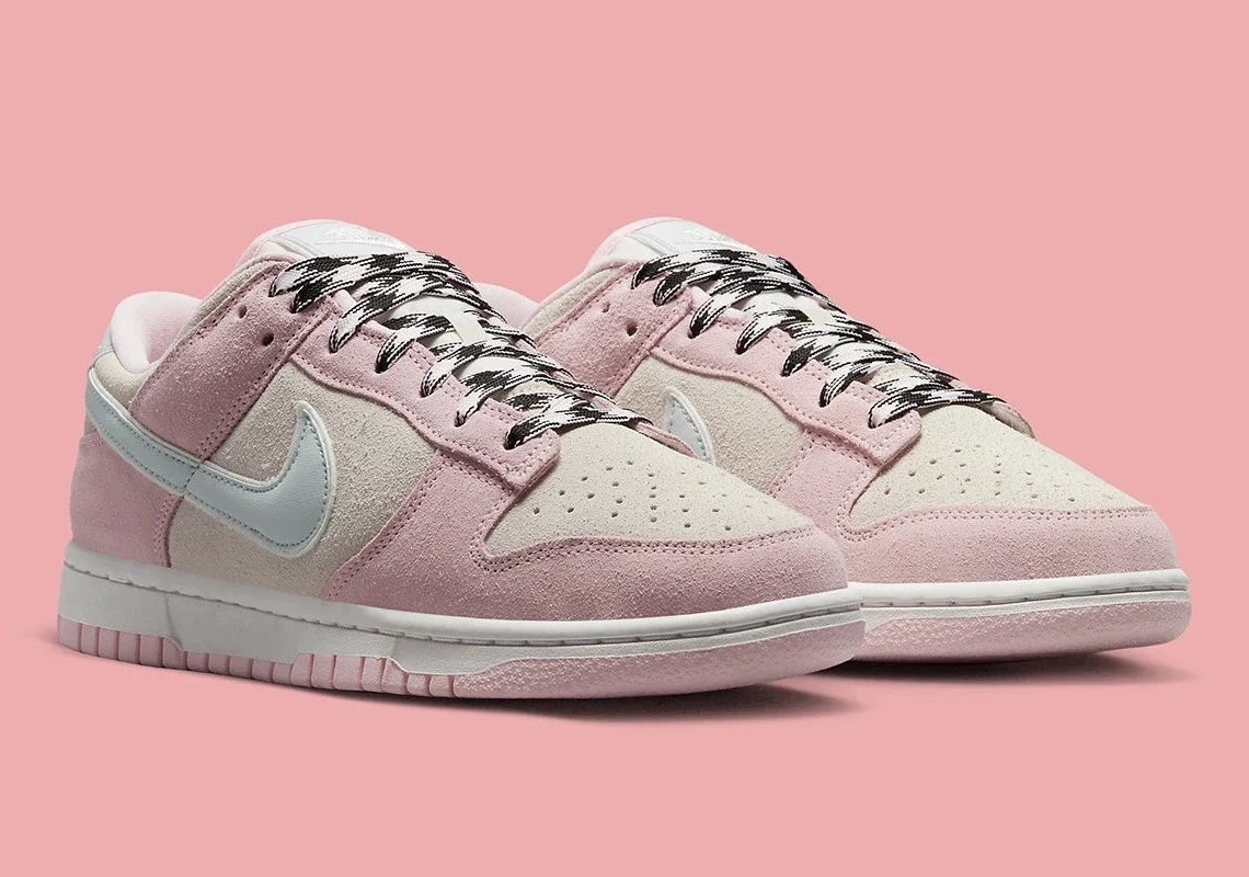 Le climat plus frais de l’automne a permis à The Swoosh d’habiller sa Nike Dunk Low, qui a fait l’objet d’une large publicité, d’une multitude de compositions à base de daim, de fausse fourrure et de polaire, et d’en faire de même avec sa dernière proposition aux couleurs pastel. Apparue pour la première fois sur des images divulguées fin septembre, cette nouvelle offre adopte une construction en daim sur ses superpositions et ses panneaux de base, tandis qu’une esthétique luxueuse est appliquée de manière rare par le biais de languettes de talon et de languettes de languette en cuir brodé, ainsi que par le biais du textile assorti des Swooshes du milieu du pied.