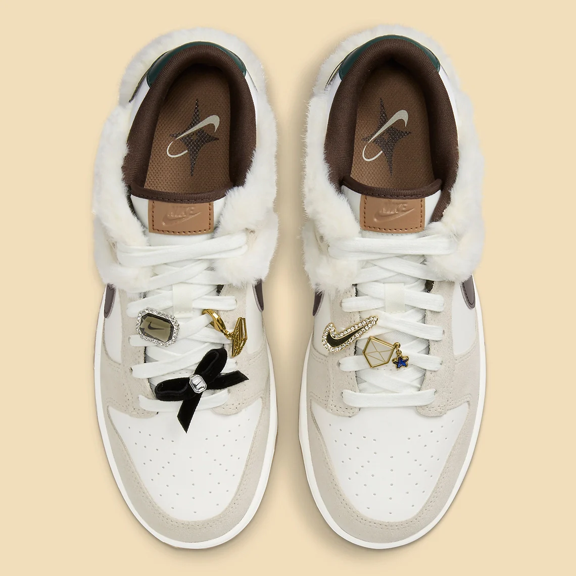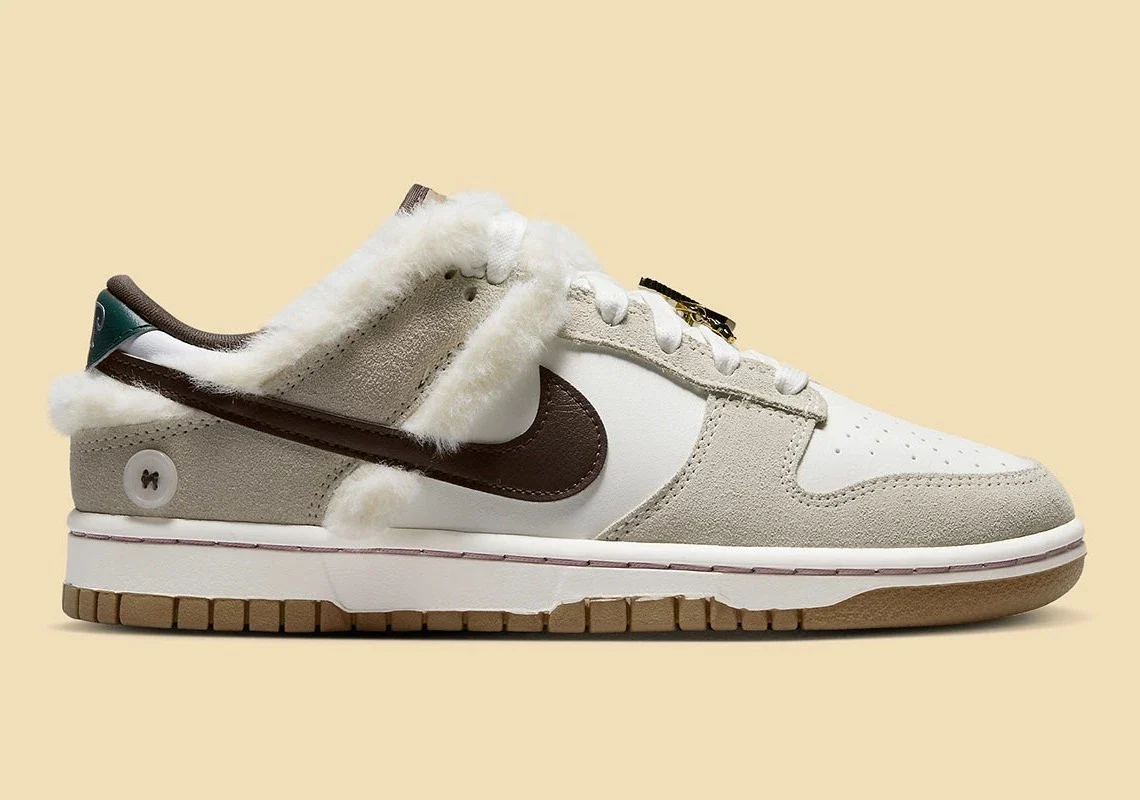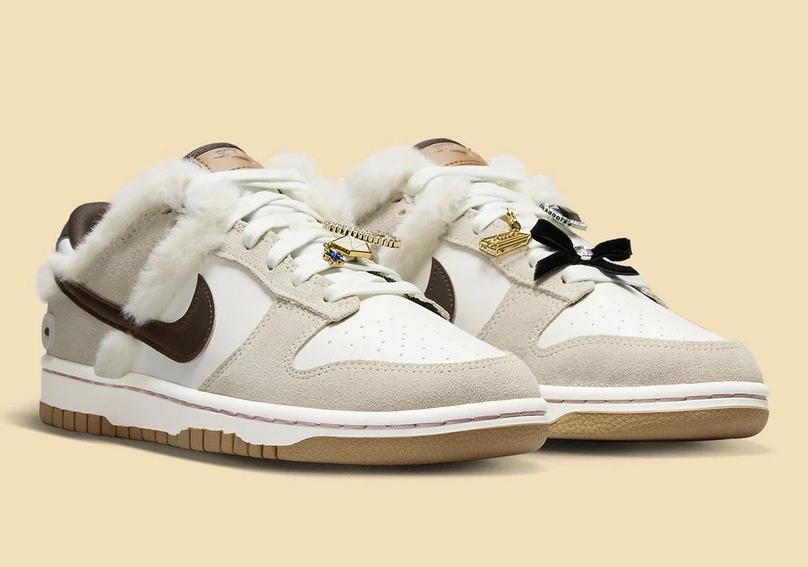 Dès que le temps descend en dessous de 70 degrés, le catalogue Nike (comme nous tous) sort ses plus belles tenues. La Dunk Low suit bien sûr le mouvement, en ajoutant divers bijoux et de la fourrure de vison à sa construction. Même si ce n’est pas la première fois que la marque met en œuvre l’un ou l’autre de ces détails, la paire est quelque peu unique grâce à son exécution.