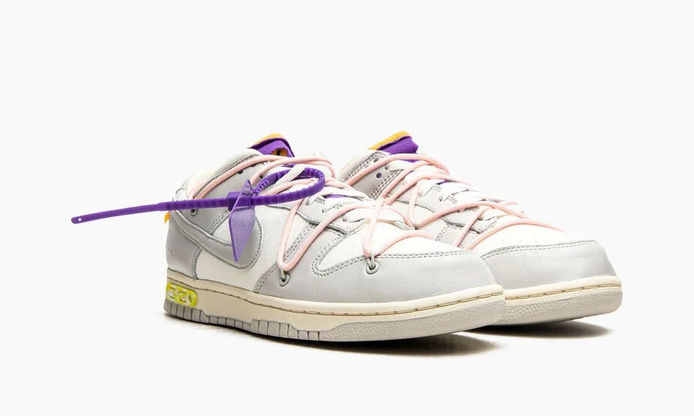 Surnommée la collection « Dear Summer » par le natif de l’Illinois (et « The 50 » par les spectateurs sur les réseaux sociaux), la collaboration à venir est le projet le plus vaste d’Abloh avec NIKE, Inc. depuis « The Ten » de 2017, qui a réinventé 10 silhouettes sous l’égide du conglomérat nord-américain. Auparavant supposé être une gamme de 20 paires regorgeant de près de deux douzaines de coloris différents, le dernier effort d’Off-White se concentre principalement sur une Nike Dunk low et l’anime avec 48 couleurs différentes sur la dentelle, la languette, la doublure de chaussette, la cravate zippée, le numéro de lot et la sous-couche swoosh latérale.