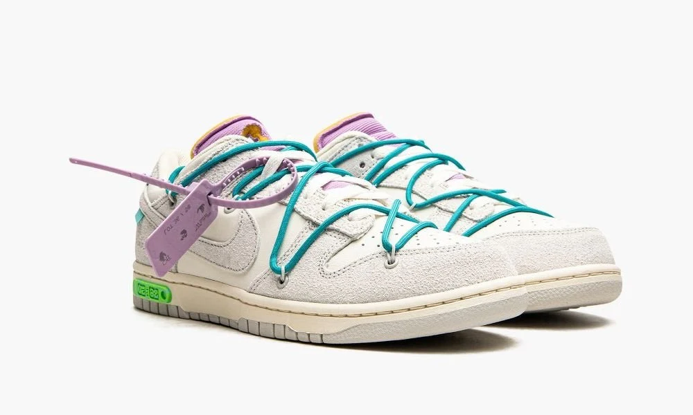 Surnommée la collection « Dear Summer » par le natif de l’Illinois (et « The 50 » par les spectateurs sur les réseaux sociaux), la collaboration à venir est le projet le plus vaste d’Abloh avec NIKE, Inc. depuis « The Ten » de 2017, qui a réinventé 10 silhouettes sous l’égide du conglomérat nord-américain. Auparavant supposé être une gamme de 20 paires regorgeant de près de deux douzaines de coloris différents, le dernier effort d’Off-White se concentre principalement sur une Nike Dunk low et l’anime avec 48 couleurs différentes sur la dentelle, la languette, la doublure de chaussette, la cravate zippée, le numéro de lot et la sous-couche swoosh latérale.