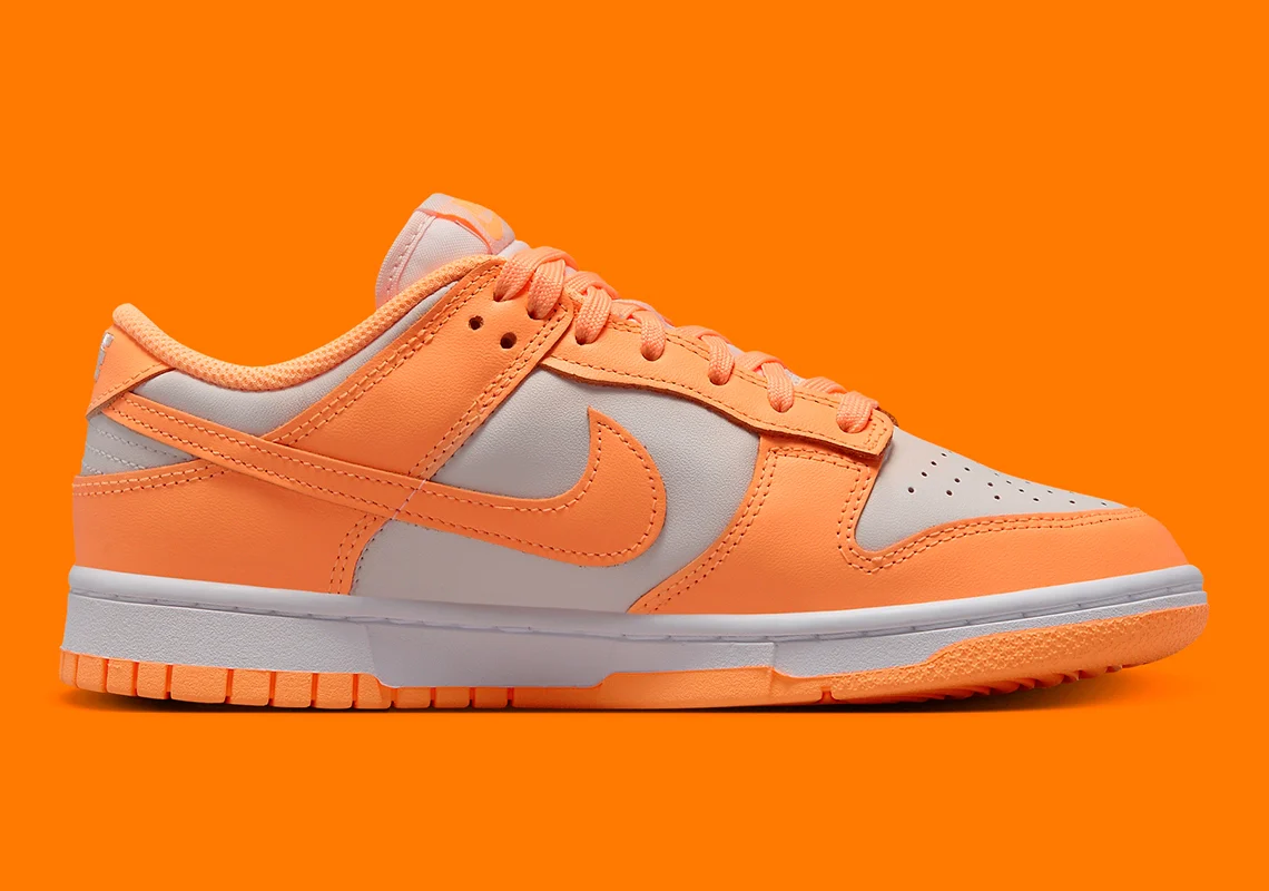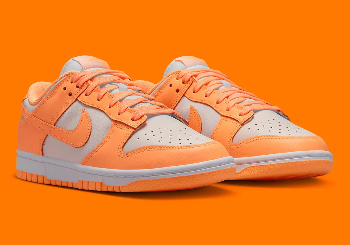 Comme on peut s’y attendre de l’une des baskets les plus populaires de Nike, la Dunk Low continue de dévoiler une poignée de maquillages chaque semaine. Et aux côtés d’une paire marine et sarcelle, le lot d’aujourd’hui comprend une version colorée visuellement proche des pêches et de la crème. Faisant écho à la signature bicolore de la silhouette, cette nouvelle version est dirigée par un vibrant « Peach Cream« , qui est appliqué sur les superpositions de la construction, les lacets et la semelle extérieure. Le marquage le long de la languette fait de même, tout comme la semelle intérieure et la doublure ; la base et la semelle intermédiaire, d’autre part, sont plus neutres dans la finition, complétant mieux le texte « NIKE » enfilé sur la languette du talon.