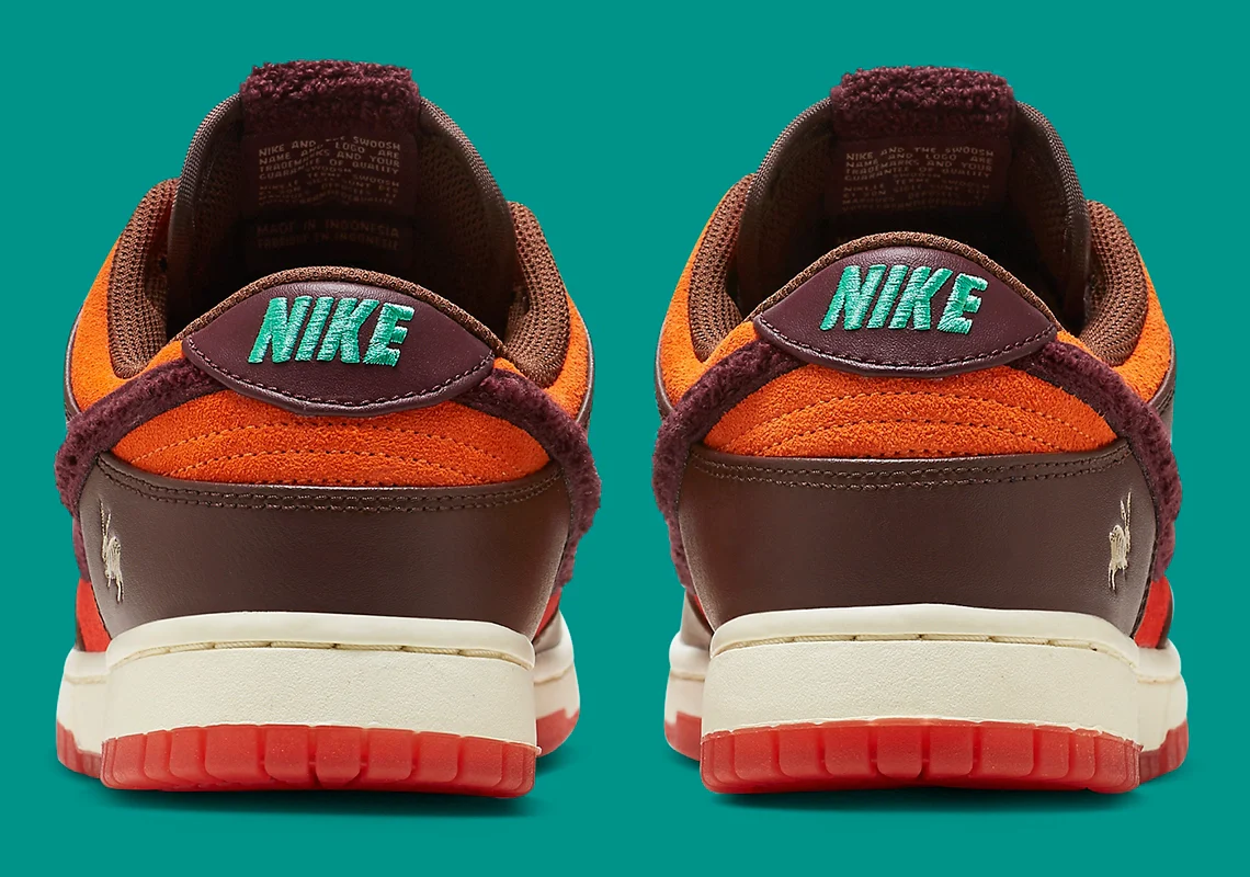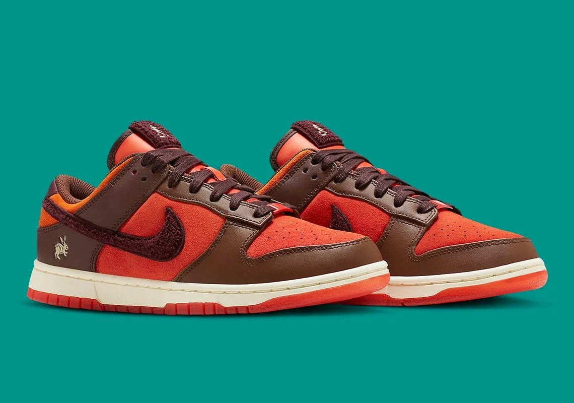 Après avoir touché à l’ensemble des offres lifestyle de The Swooshes, la collection Nike « Year of the Rabbit » revient pour doubler certaines silhouettes dont les colorations secondaires étaient trop propres pour être conservées dans les archives. Rappelant initialement la sortie de l’Air Force 1 en 2011 avec des teintes blanches laiteuses, la prochaine offre Nike Dunk Low adopte une approche totalement différente en associant des teintes orange rustiques à des cuirs marron chocolat.