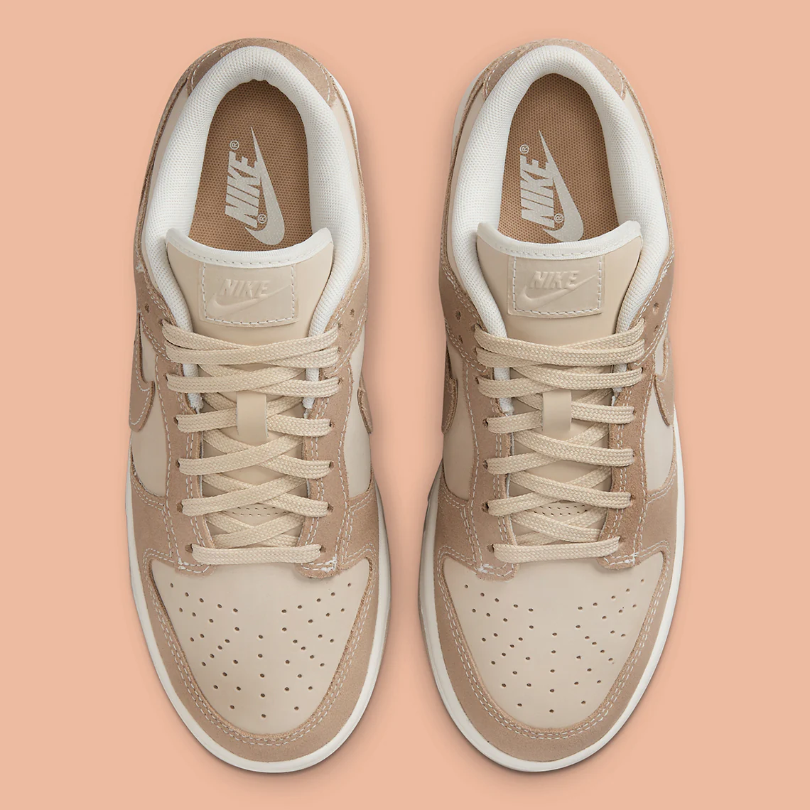 Le choix de baskets s’est considérablement élargi au cours des dernières années. Des silhouettes comme la Nike Dunk Low ont joué un rôle important dans cette évolution et, à en croire les signes, le modèle de 1985 de Peter Moore va continuer à le faire. Pour l’un de ses prochains ensembles, la silhouette faite pour le basket-ball s’est habillée d’un mélange automnal de tons « Sanddrift« , « Hemp » et « Sail« . Comme dans le passé, les superpositions autour de l’avant-pied, le long de la languette et sur le talon sont en daim doux, contrastant ainsi avec la base en cuir lisse. Les marques sur le haut de la languette et le talon supérieur prennent des finitions plus premium, élargissant encore la liste déjà gargantuesque de styles et de modèles du modèle.