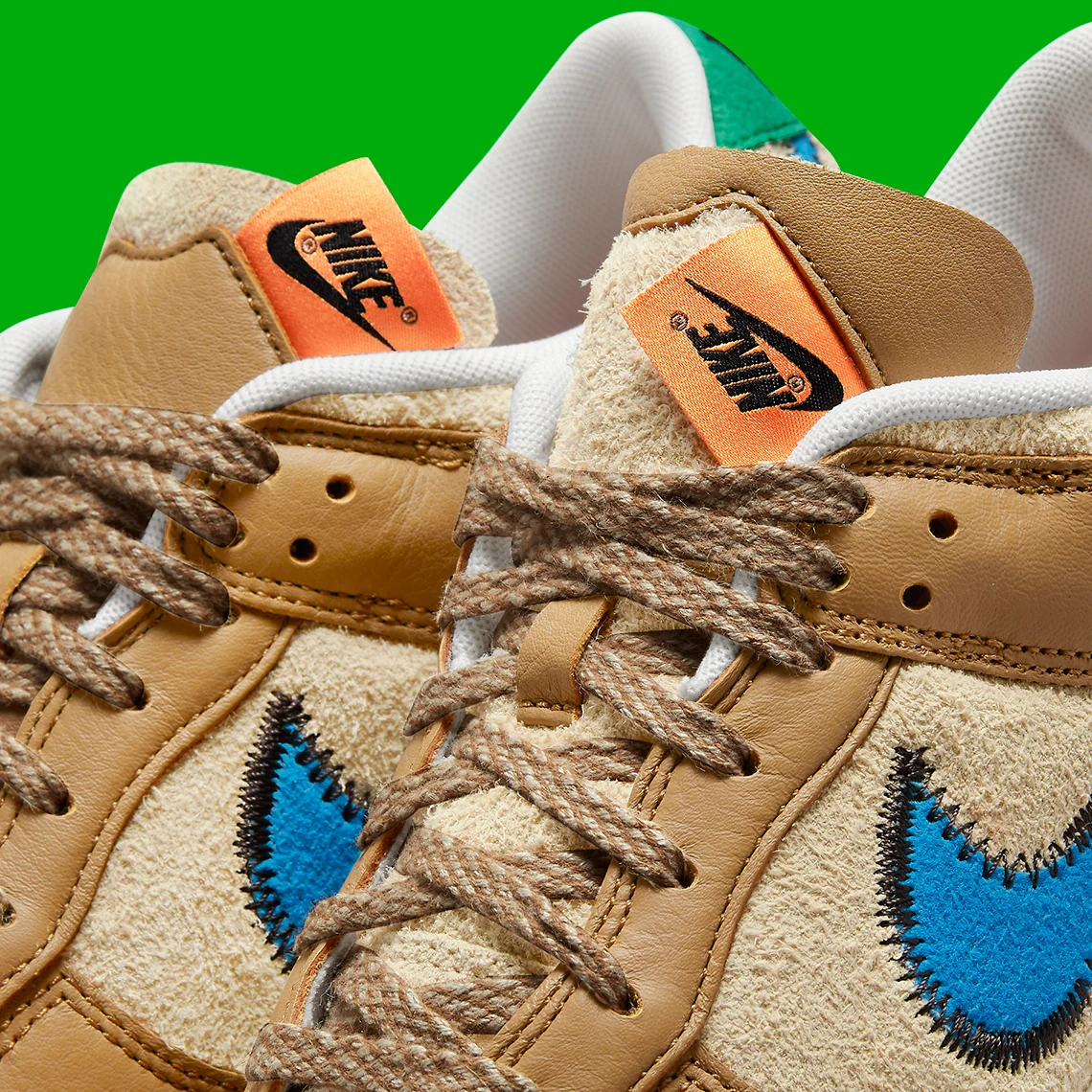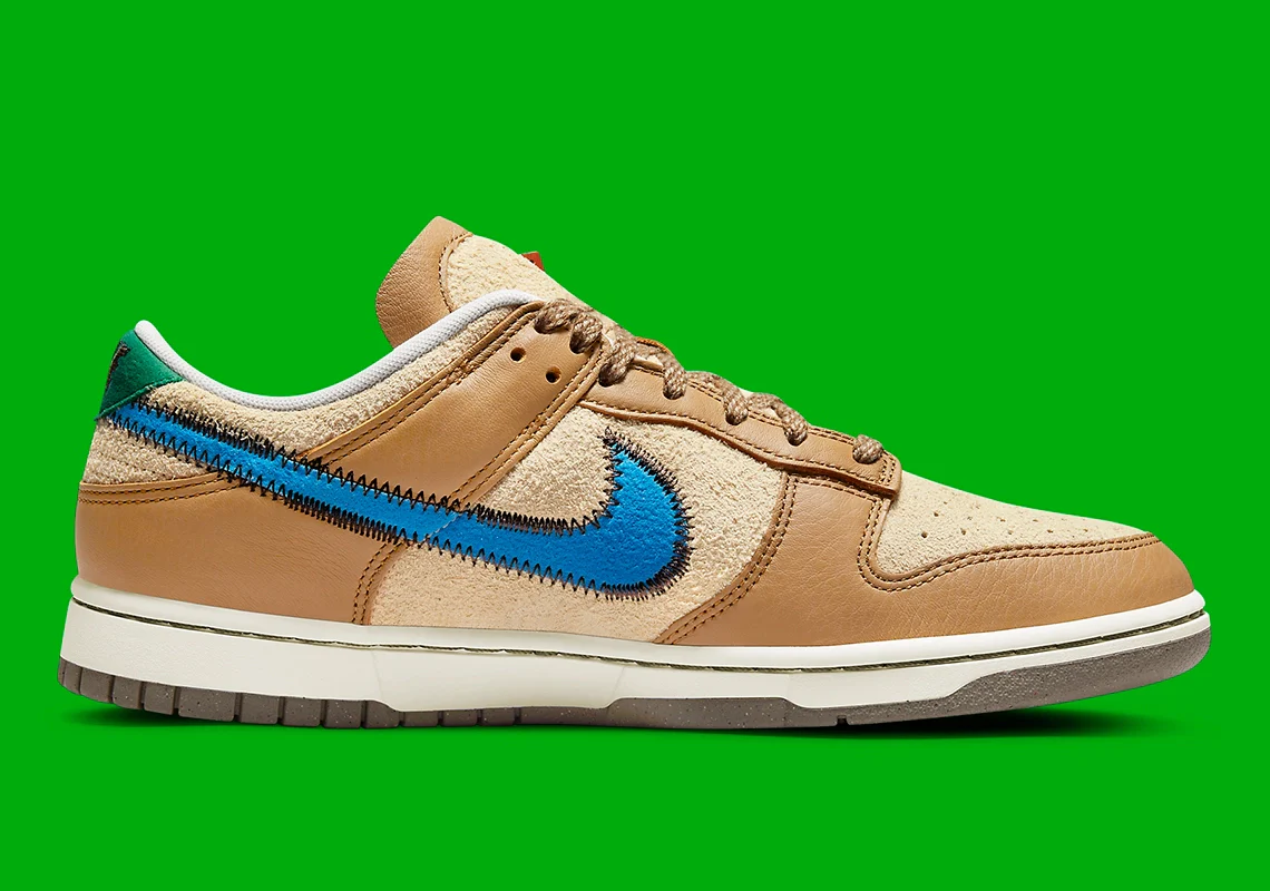 Bien plus tôt dans la saison, size ? a révélé la quasi-totalité de leurs sorties collaboratives. Parmi elles, la Dunk Low était sans aucun doute la plus excitante, se démarquant facilement du pack de 30 pièces. Et bien qu’ils n’aient pas donné de date de sortie à l’origine, il semble que nous nous rapprochions enfin de cette date puisque des images officielles viennent de faire surface. Pas aussi excentrique que certaines des collaborations les plus récentes de Nike, la version du détaillant opte pour un assemblage de matériaux haut de gamme approprié à l’automne. Des cuirs robustes sont utilisés pour les superpositions et le cou-de-pied, et sont teintés d’une teinte havane profonde. Les suèdes en dessous, qui offrent une sensation de qualité similaire, sont d’un beige plus clair, s’accordant bien avec les lacets en corde et la mousse qui rembourre la languette reconstruite. Enfin, le Swoosh et la languette du talon ( cette dernière étant soulignée par des points en zigzag ) complètent le coloris avec des touches de bleu et de vert, respectivement.